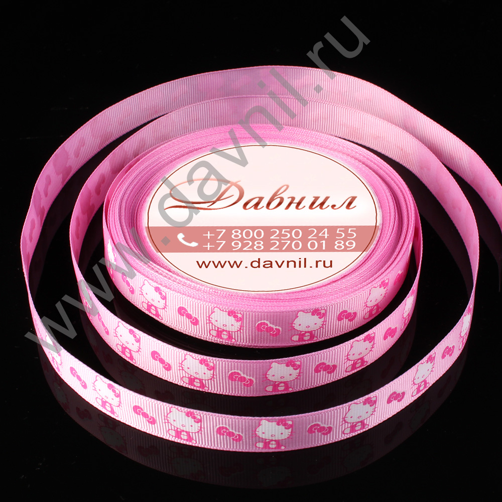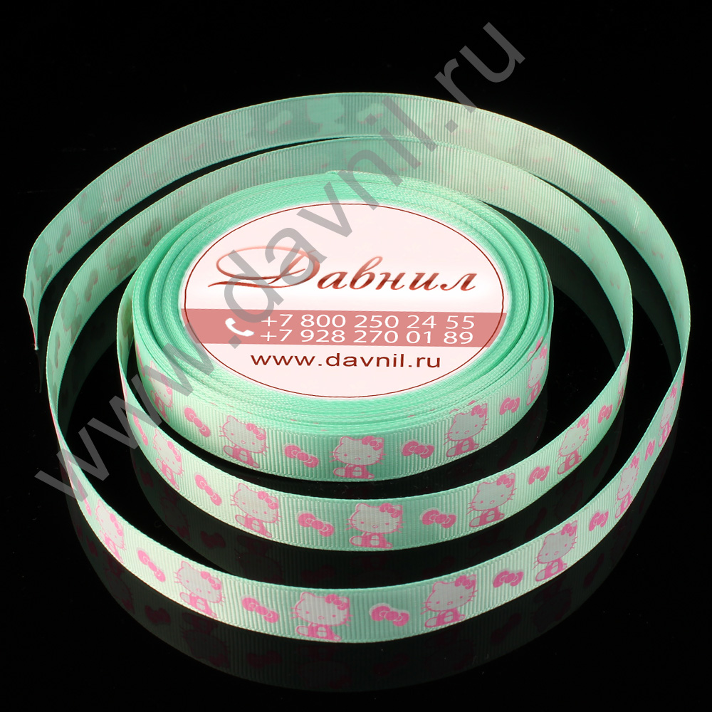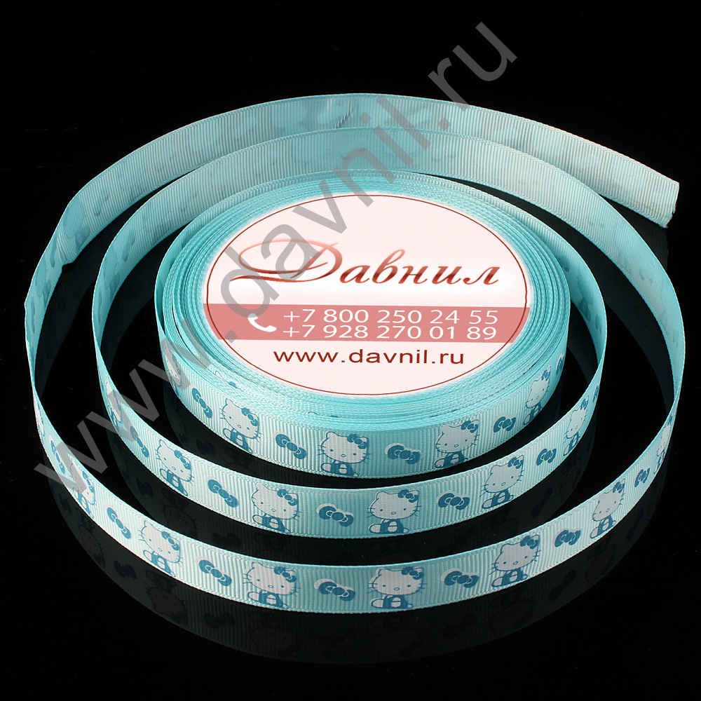 Лента репсовая декоративная "Hello Kitty" 1,5 см 25 ярдов голубая 011