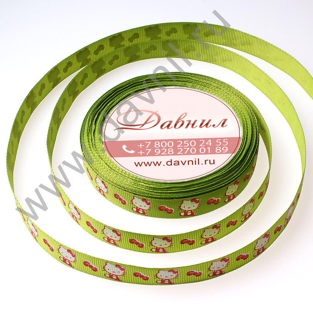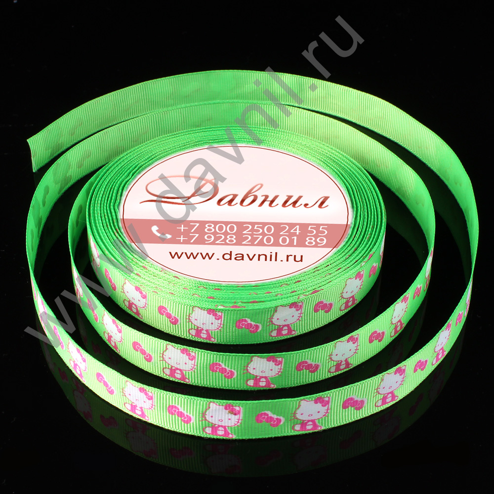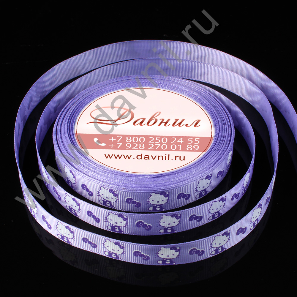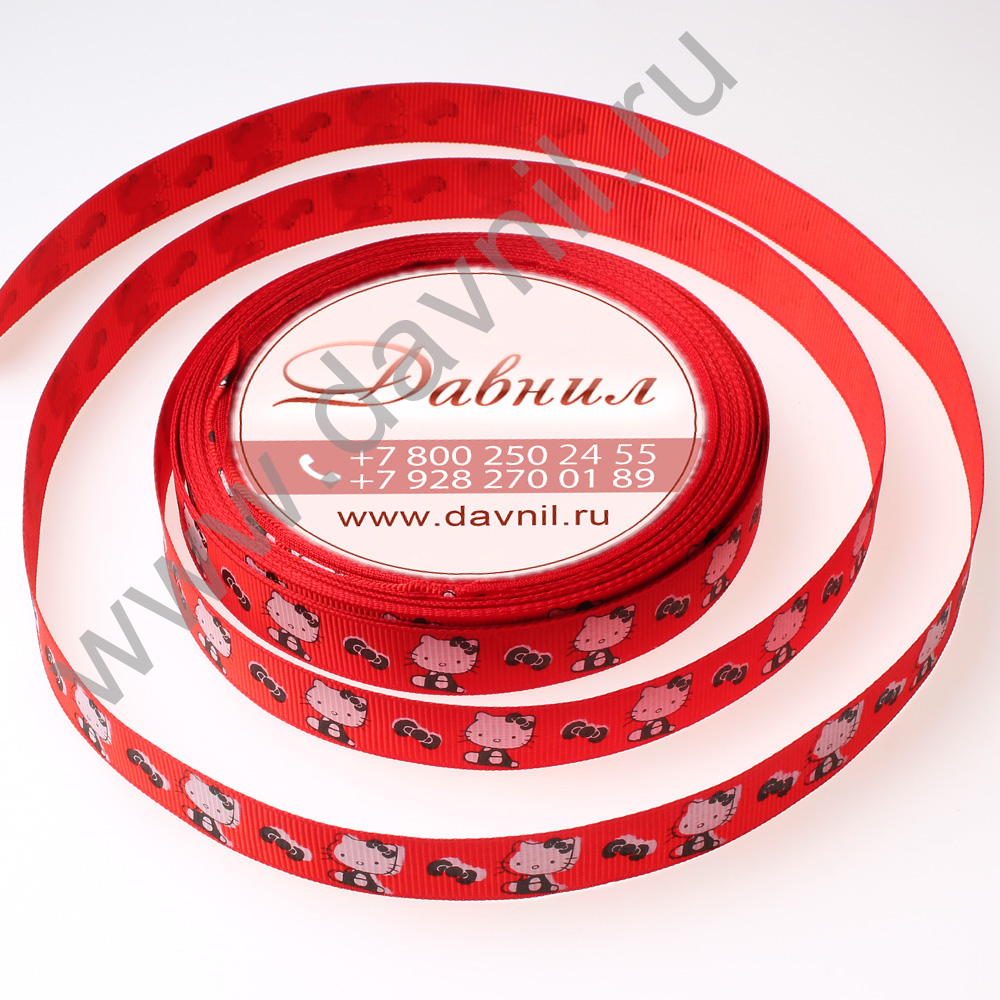 Лента репсовая декоративная "Hello Kitty" 1,5 см 25 ярдов голубая 011