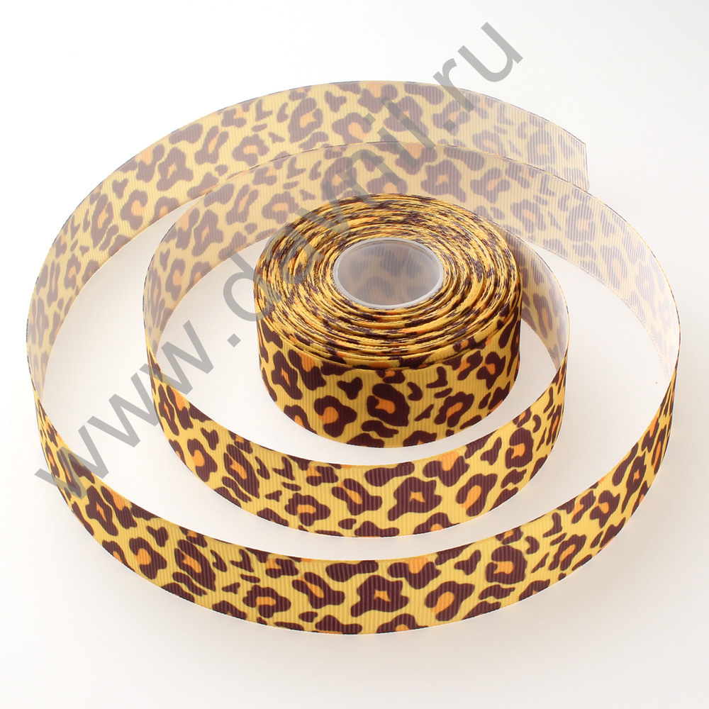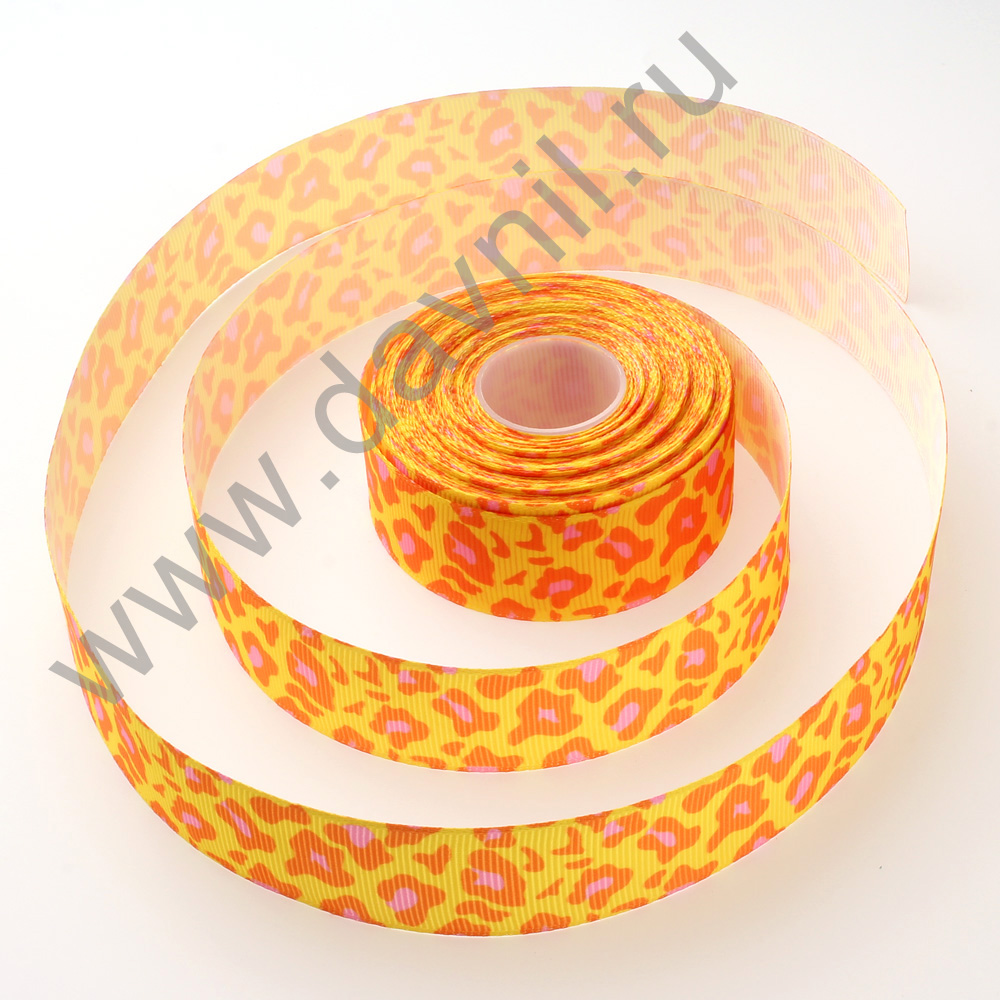 Лента репсовая декоративная "Пятна леопарда" 2,5 см*15 ярдов, желтая