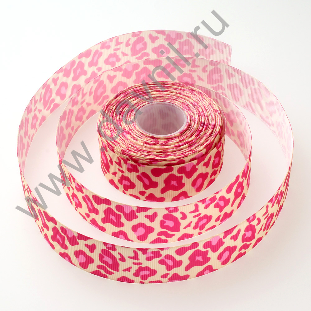 Лента репсовая декоративная "Пятна леопарда" 2,5 см*15 ярдов, бежевая