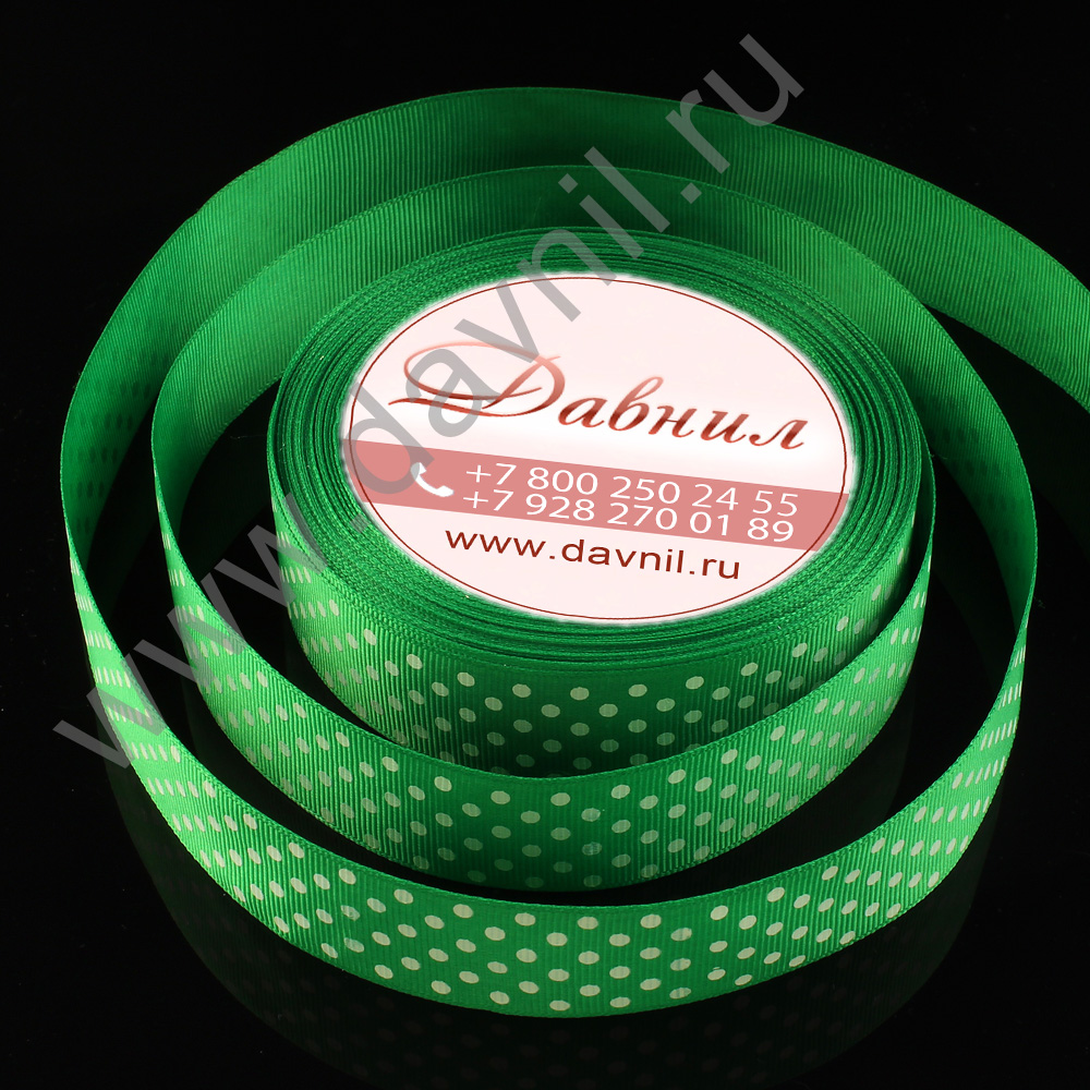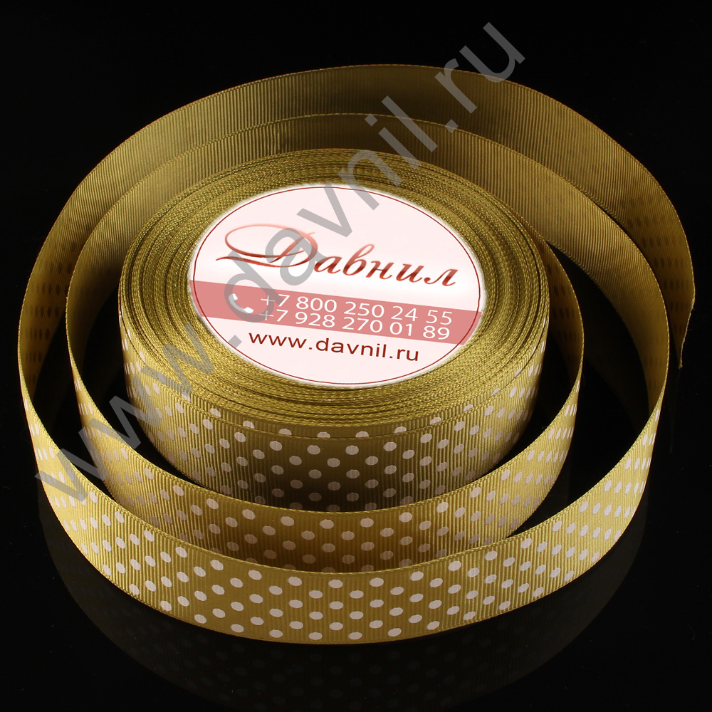 Лента репсовая мелкий горошек 2,5 см 25 ярдов, хаки 232