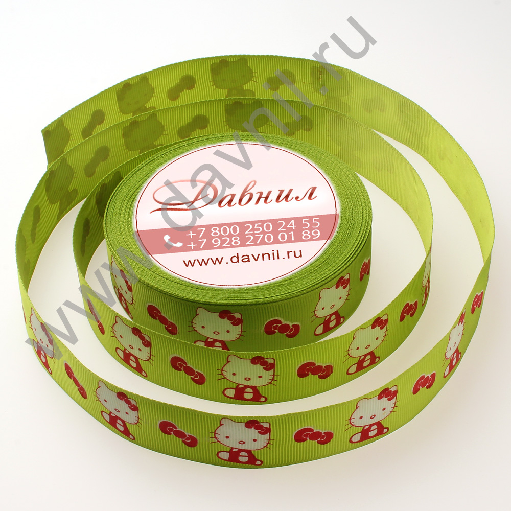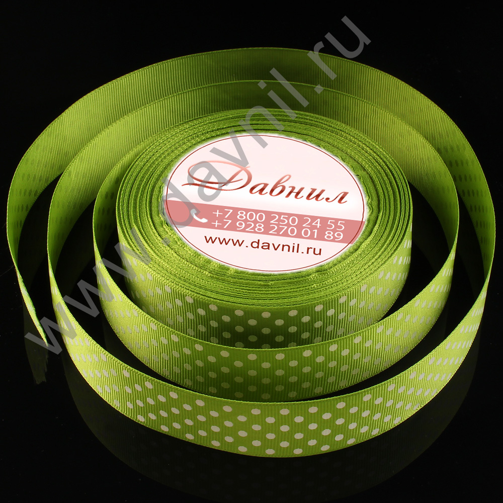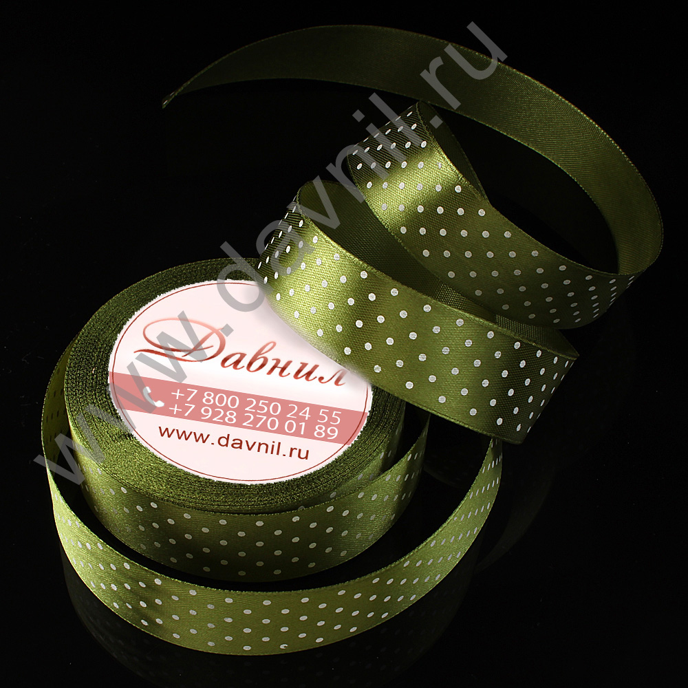 Лента атласная средний горошек 2,5 см 25 ярдов оливковая 113