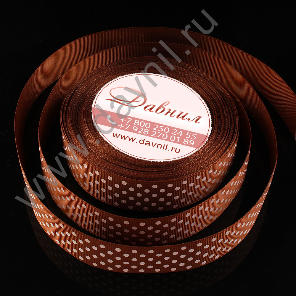 Лента репсовая мелкий горошек 2,5 см 25 ярдов, коричневая 032