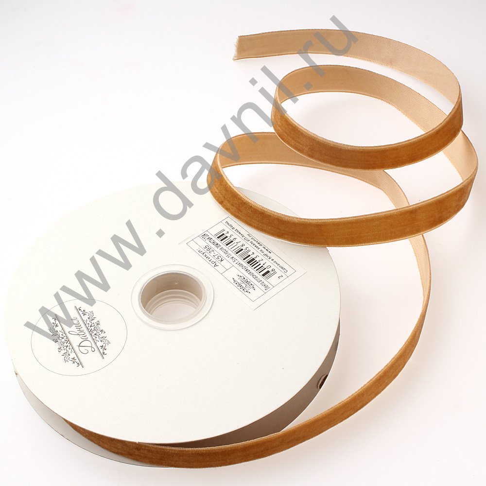 Лента бархатная 1,5 см*15 ярдов коричневая 104
