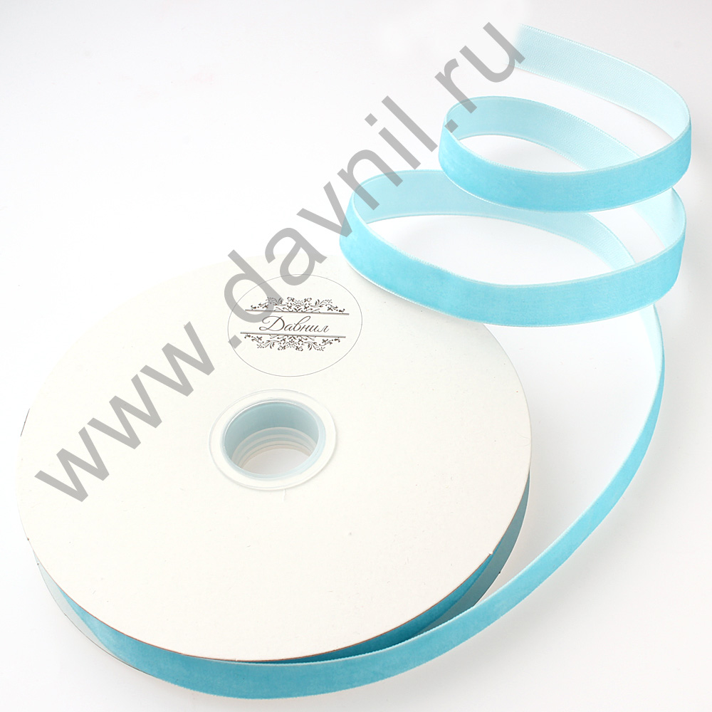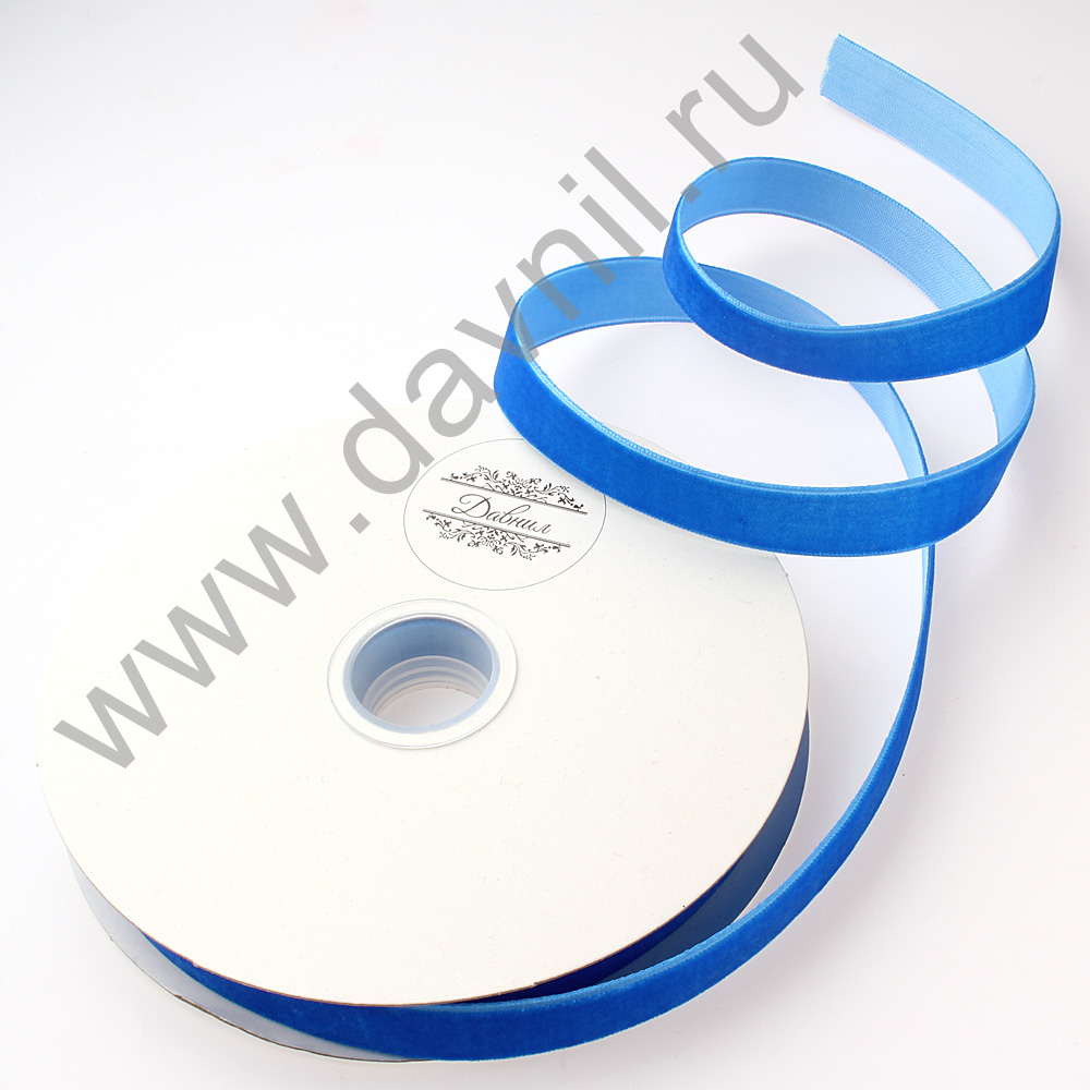 Лента бархатная 1,5 см*15 ярдов голубая 171
