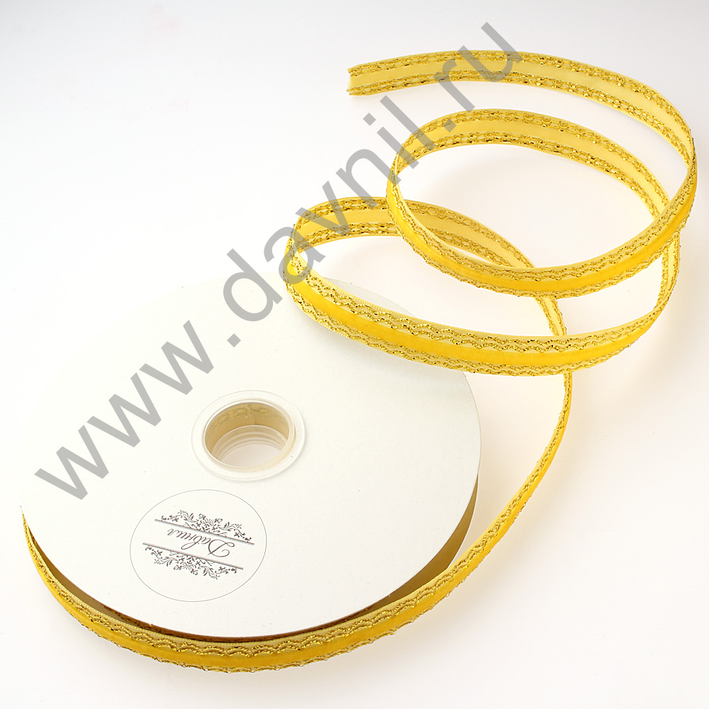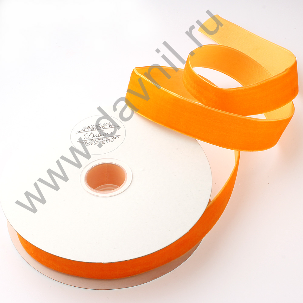 Лента бархатная 1,5 см*15 ярдов жёлтая 18