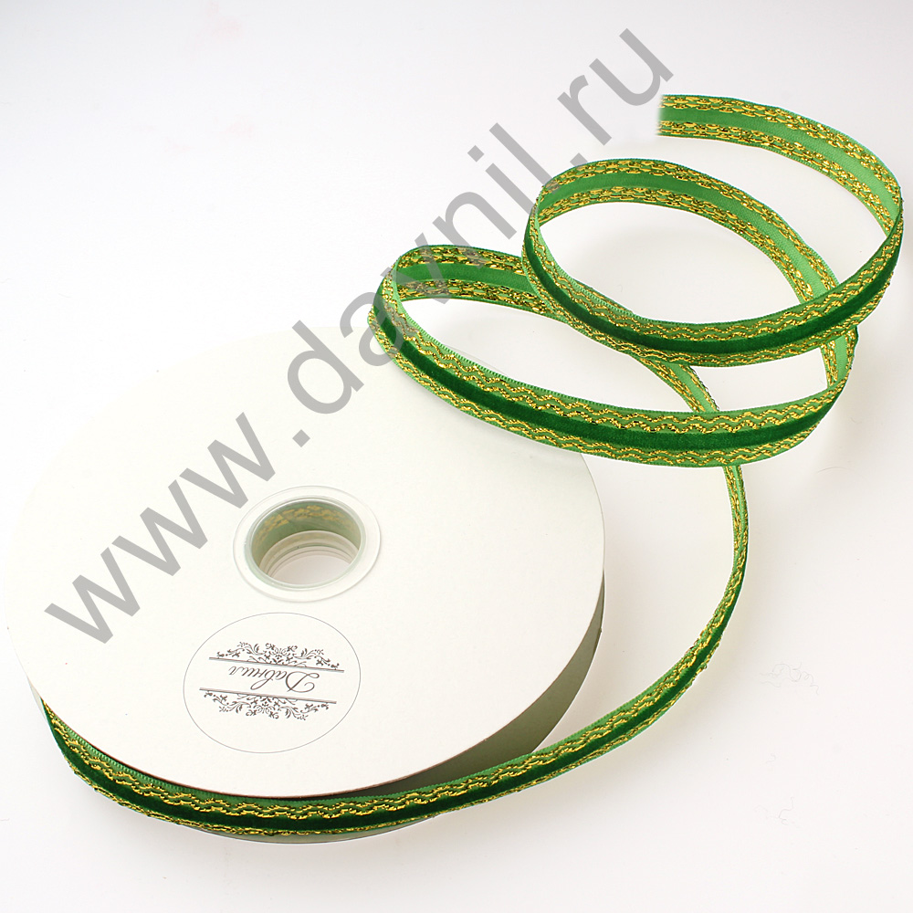 Лента бархатная с золотым люрексом 1,5 см*15 ярдов чёрная 03