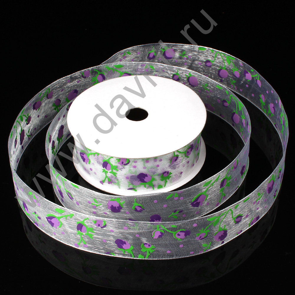 Лента органза "Розы" 2,5 см*5 ярдов сиреневая