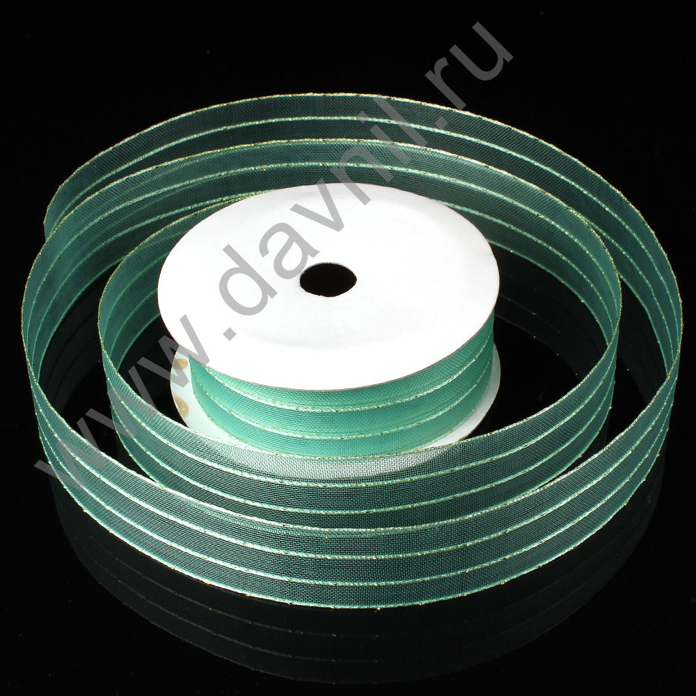 Лента органза с одной полоской 2,5 см*5 ярдов зелёная