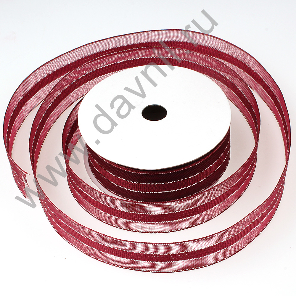 Лента органза с одной полоской 2,5 см*5 ярдов бордовая