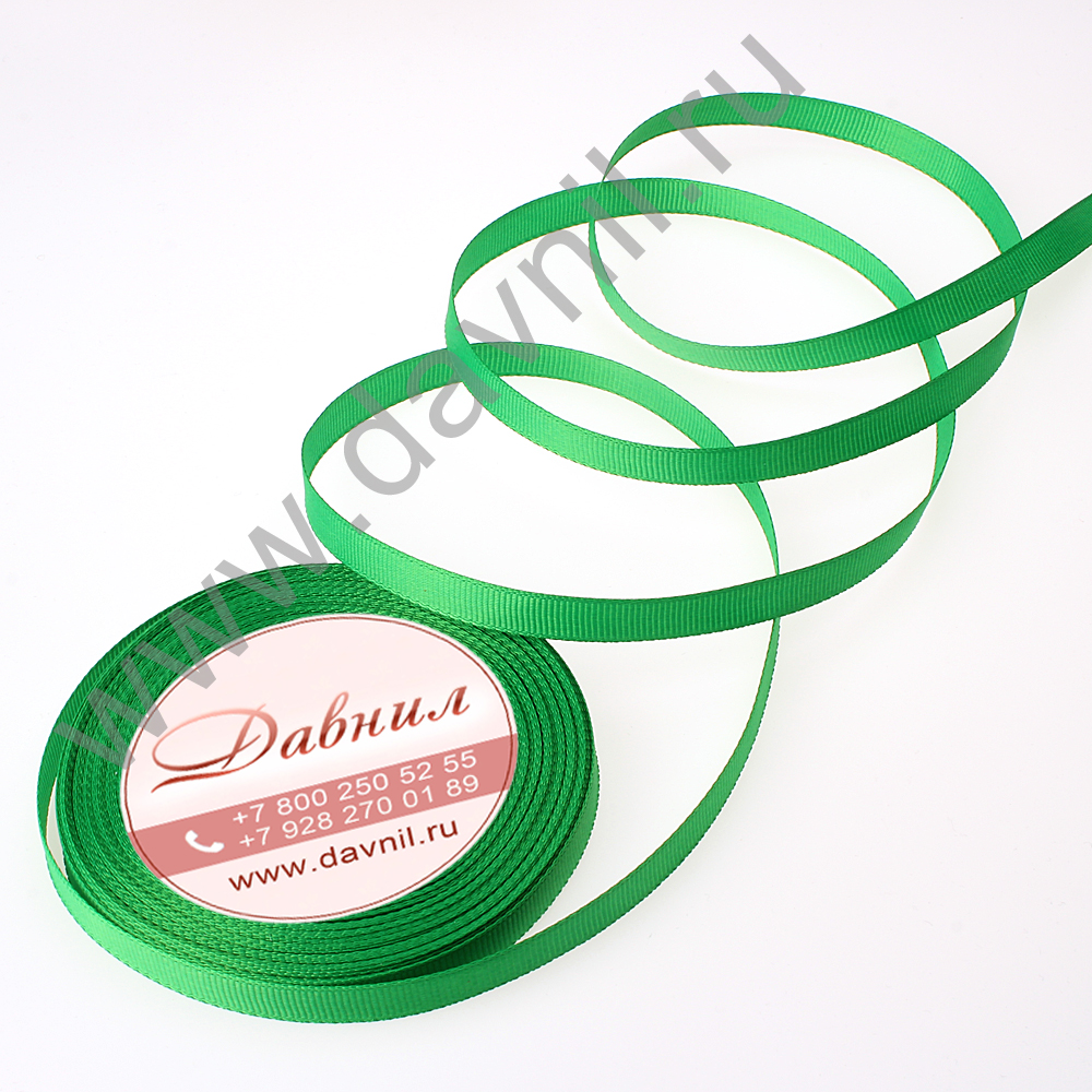 Лента репсовая 1 см 20 ярдов зелёная 019