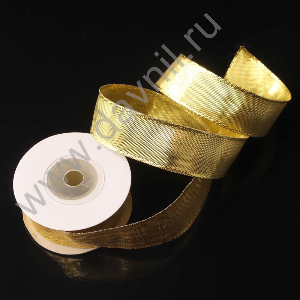 Лента парча тканевая 2,5 см 10 ярдов золотая