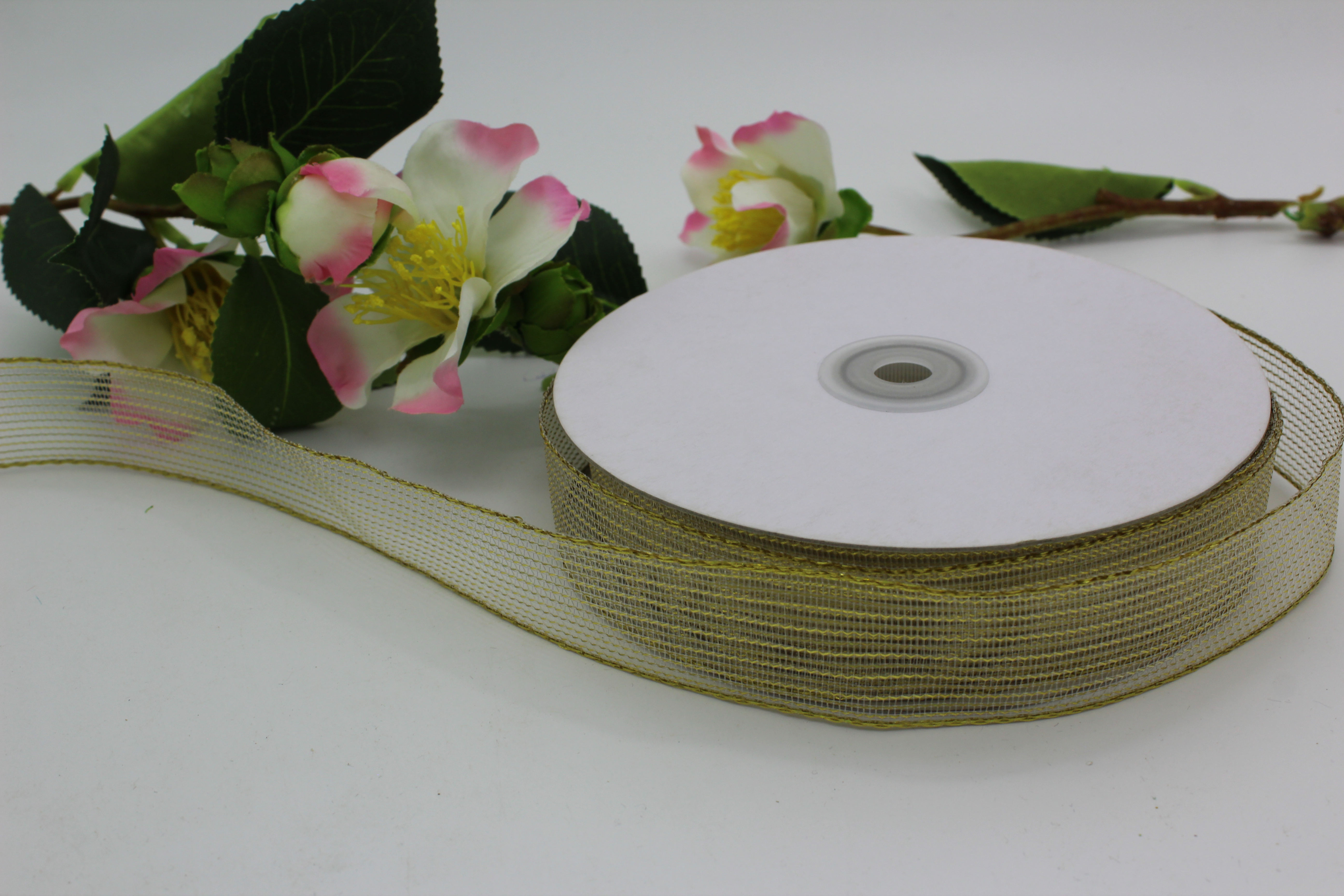 Лента сетка 3 см 50 ярдов золотая с золотой окантовкой