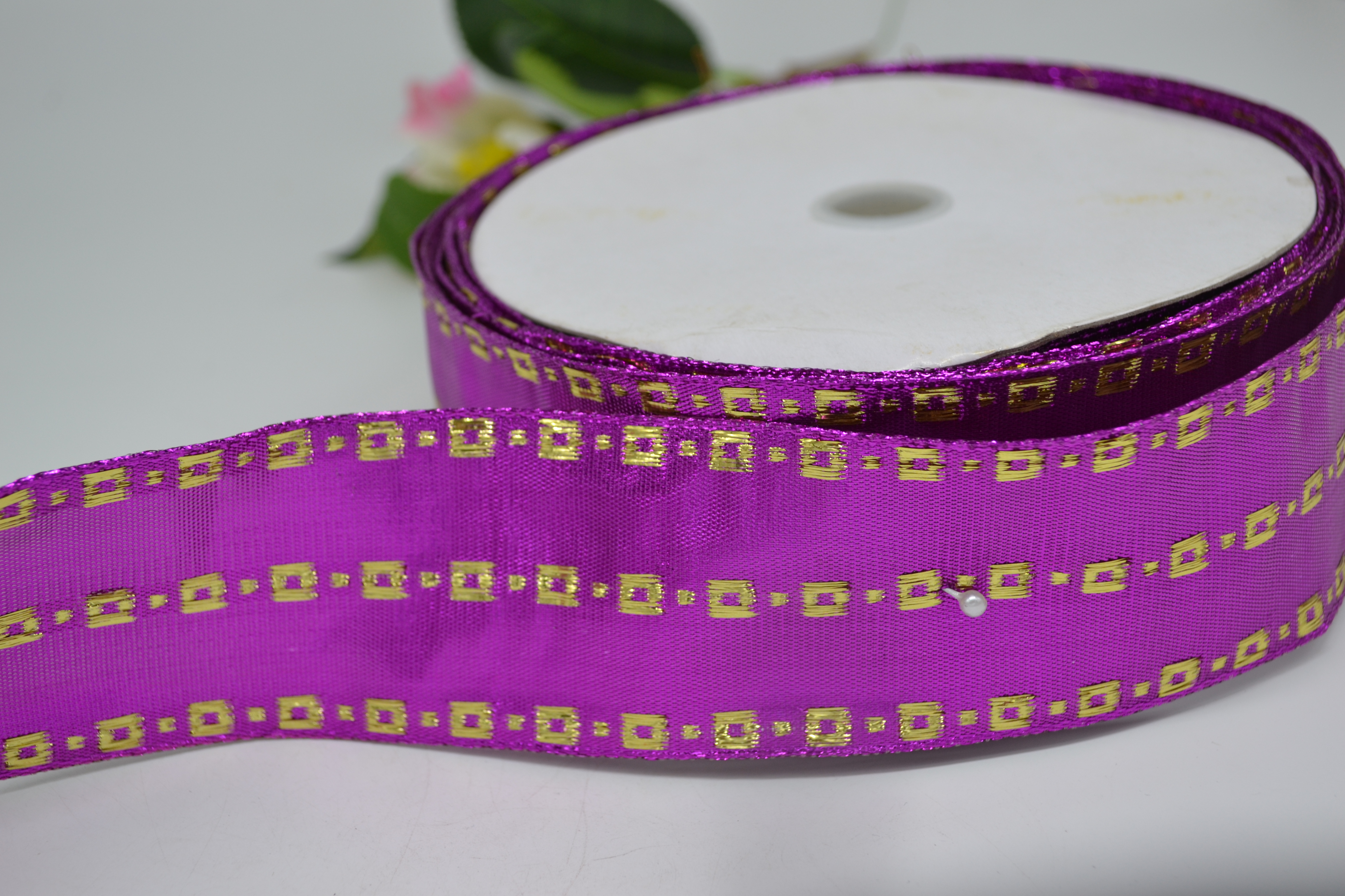 Лента сетка 5 см 30 ярдов фуксия с золотыми кубиками