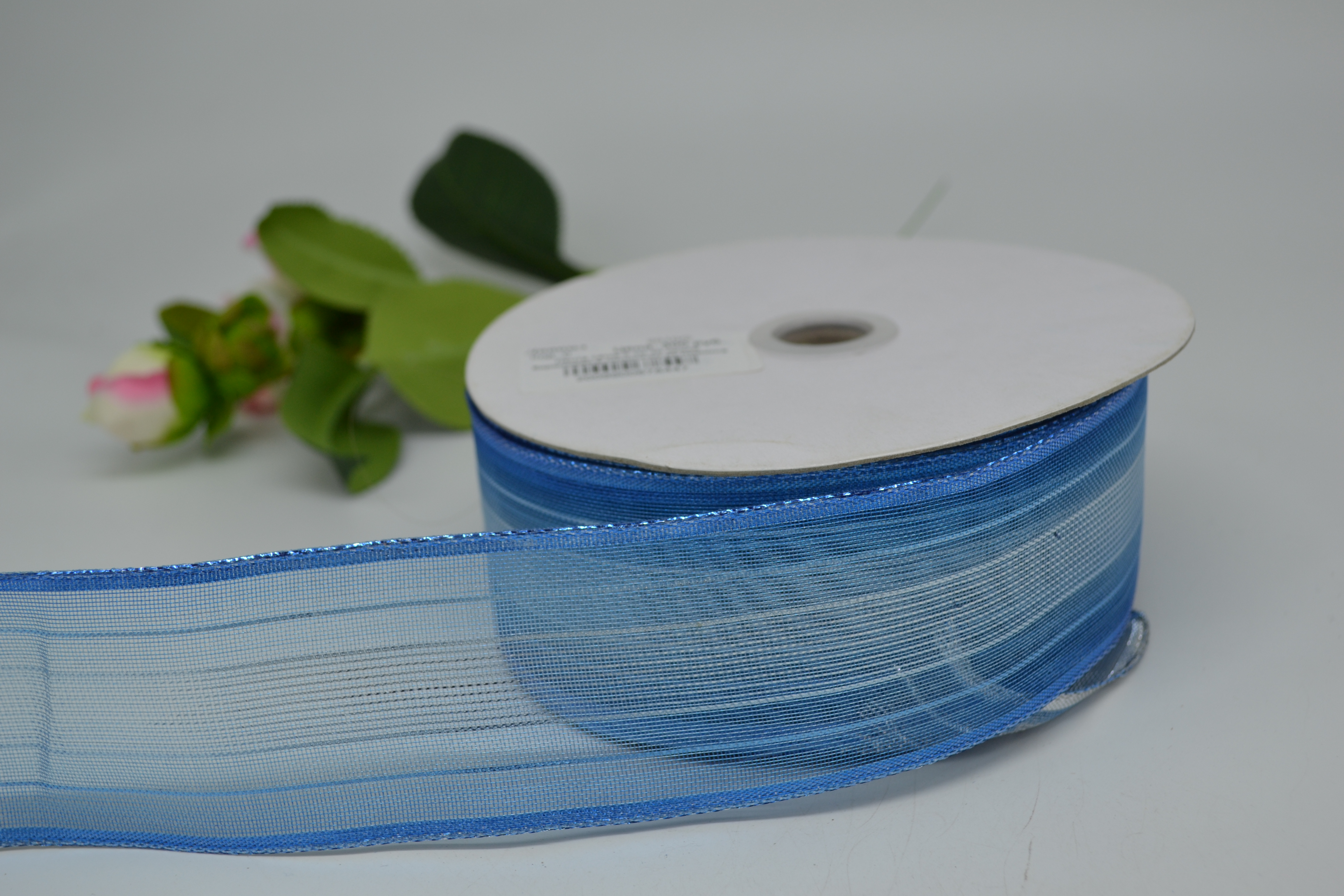 Лента сетка 5 см 30 ярдов бирюзовая в полосочку из люрекса