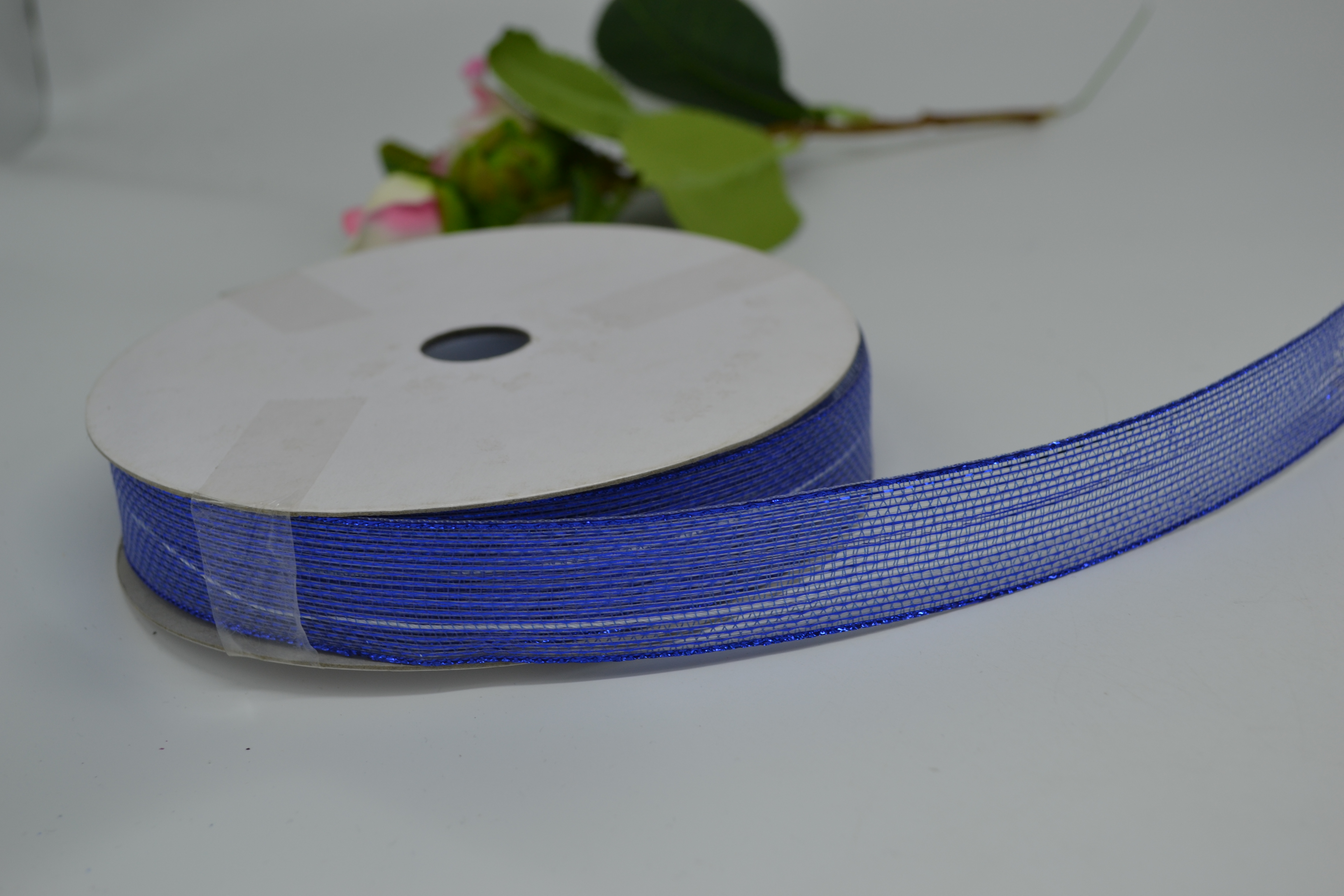 Лента сетка 2,5 см 50 ярдов синяя с люрексом