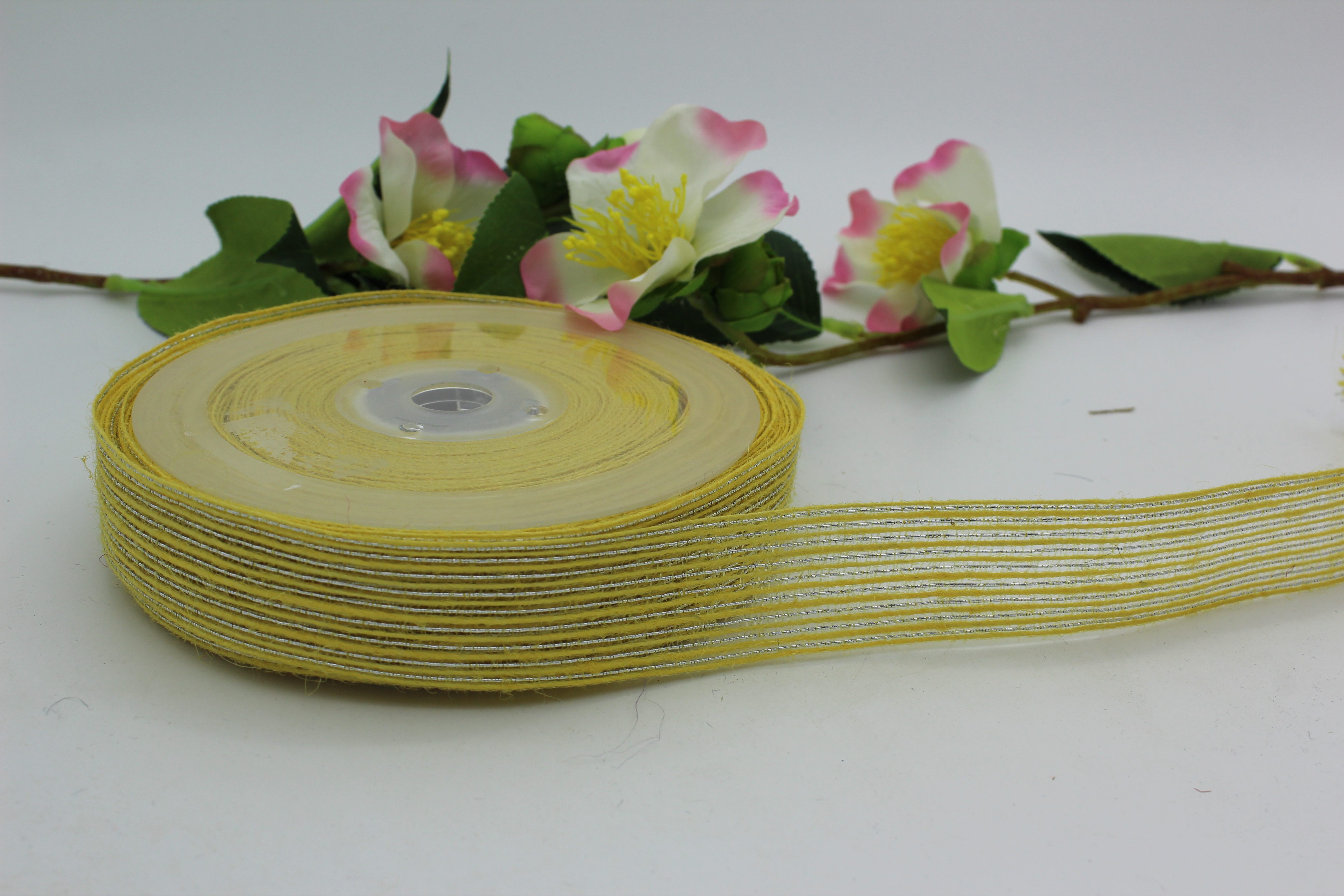 Лента мешковина с серебрянным люриксом 2,5 см жёлтая