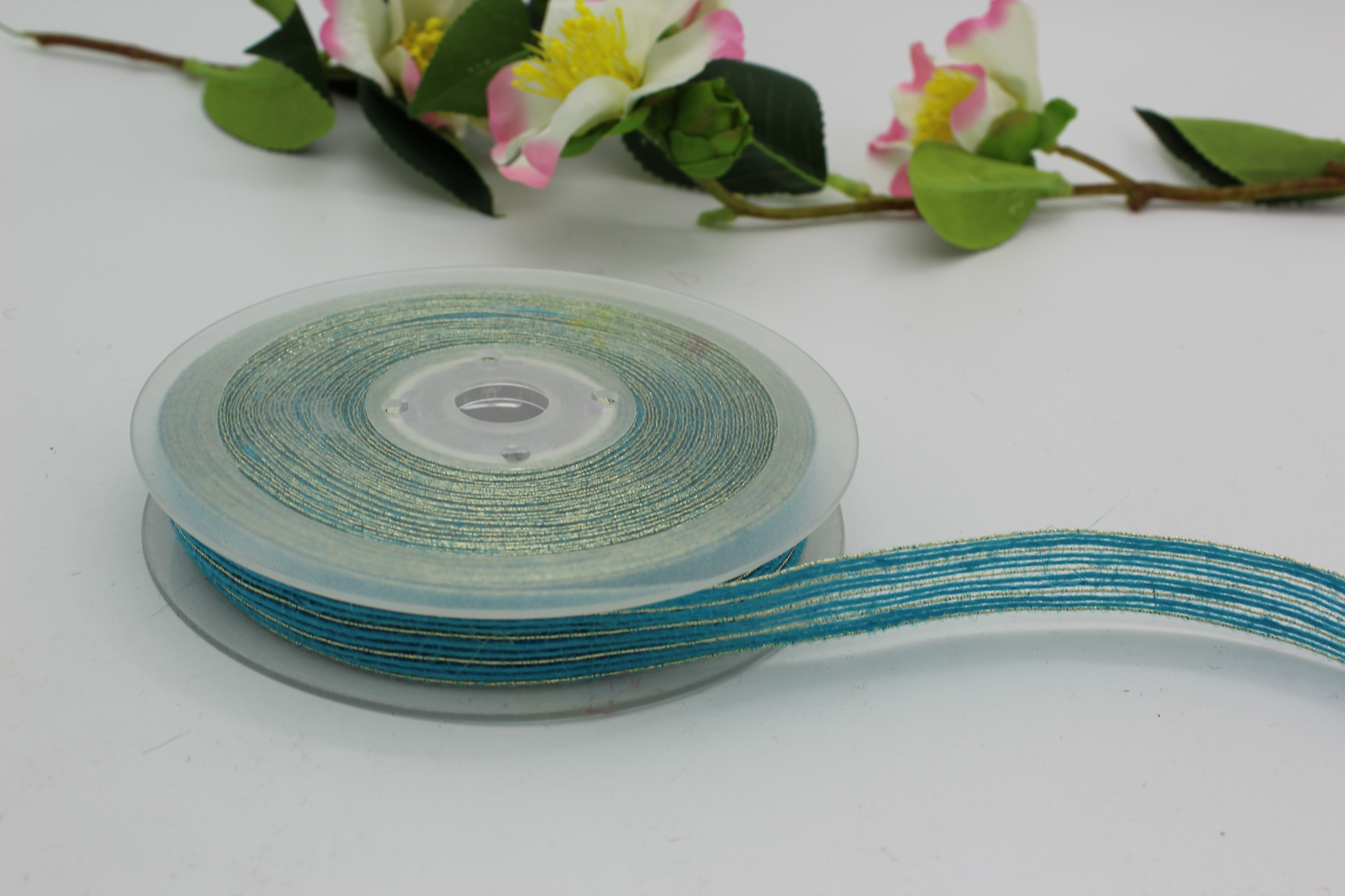 Лента мешковина 1,8 см с серебрянным люриксом бирюзовая