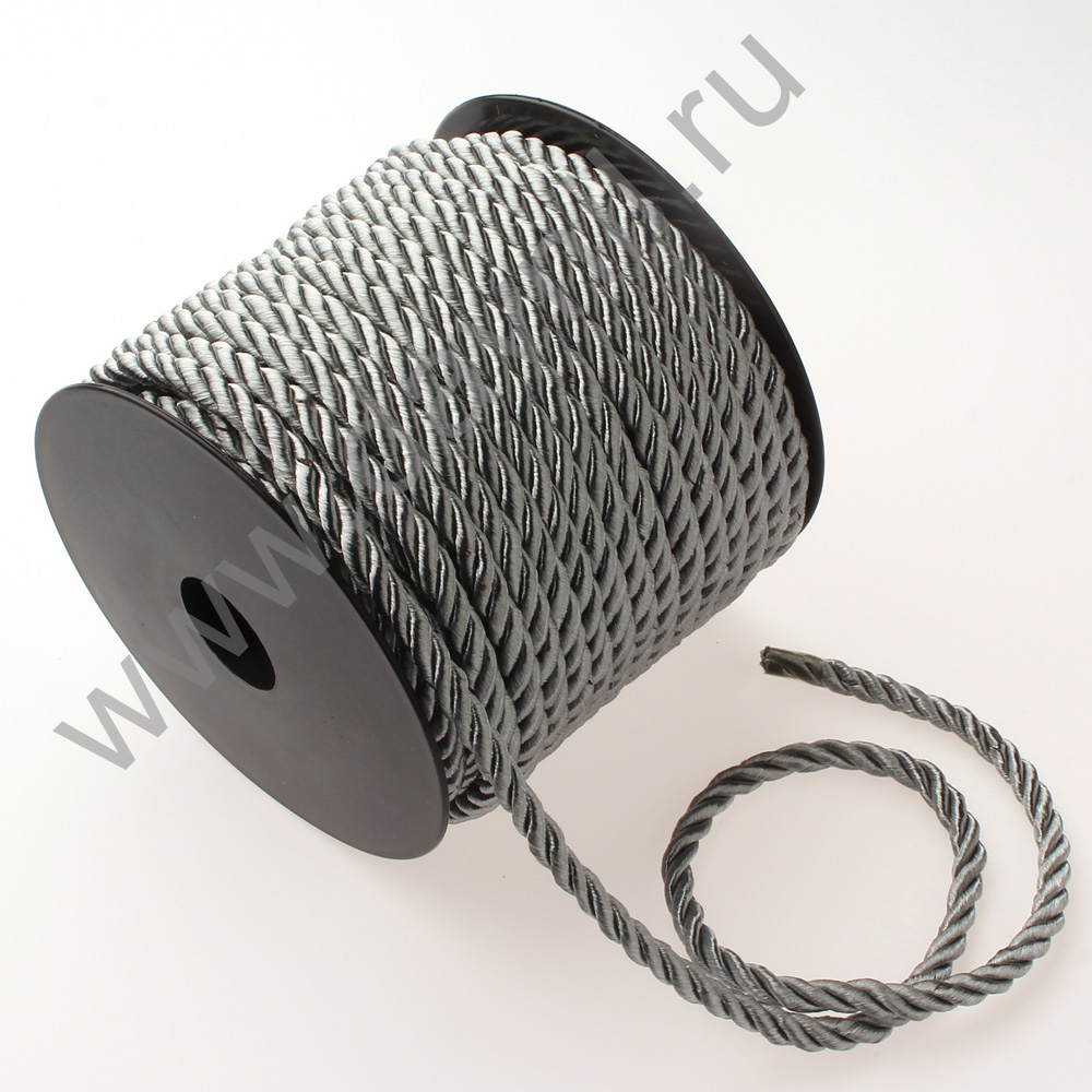 Шнур витой однотонный с люрексом d=5 мм 25 м, серебро 052