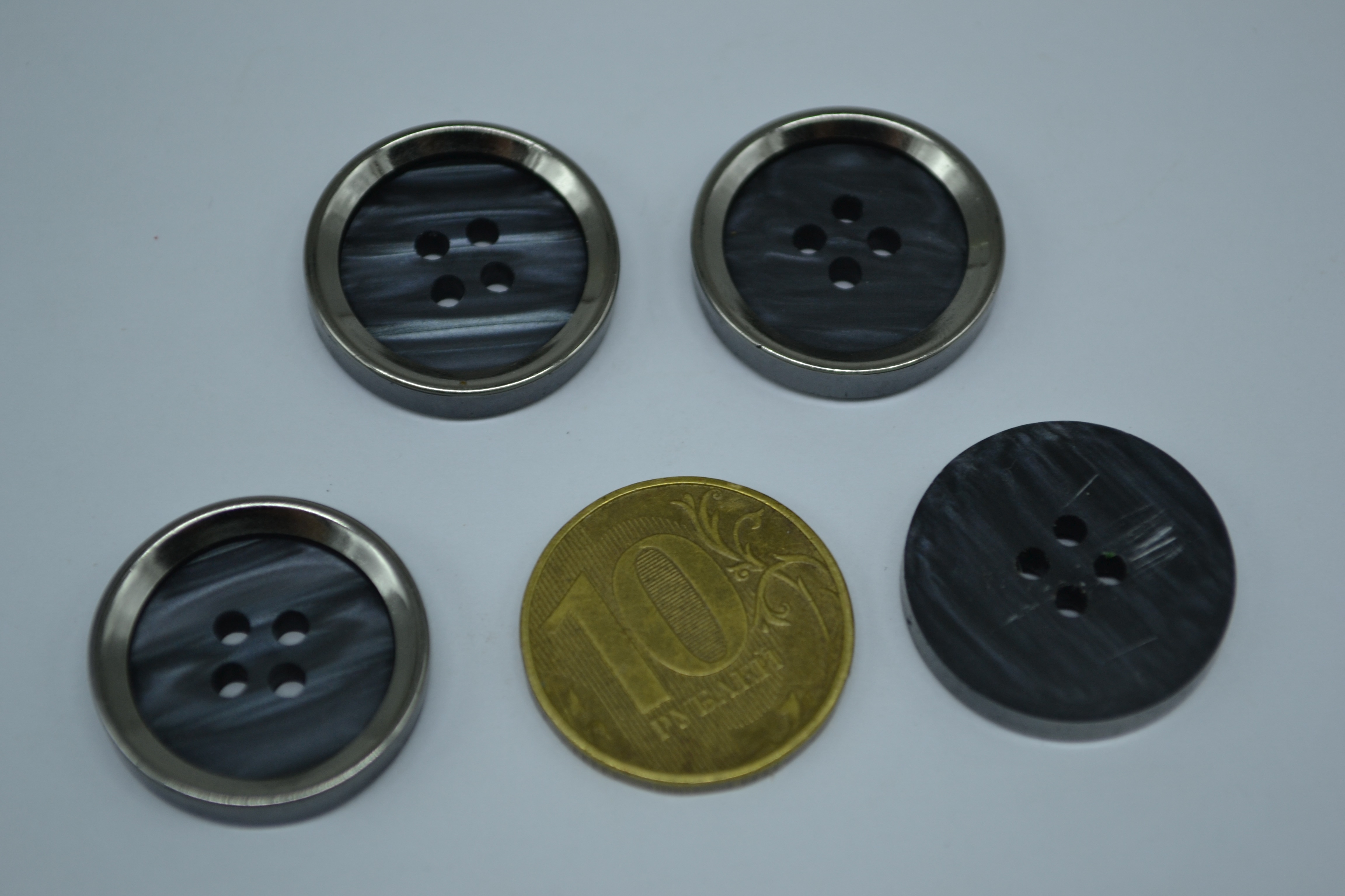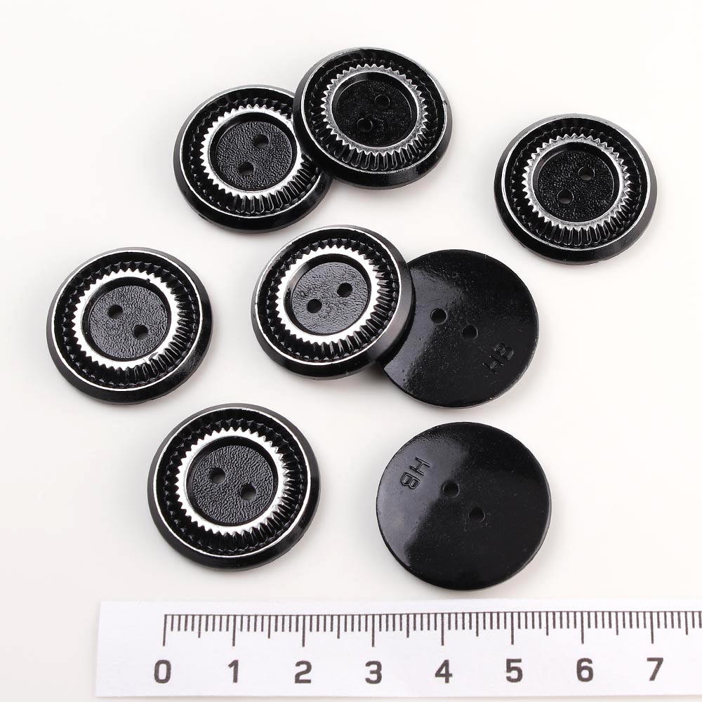Пуговица 25 мм чёрная с серебряным кольцом 10 шт