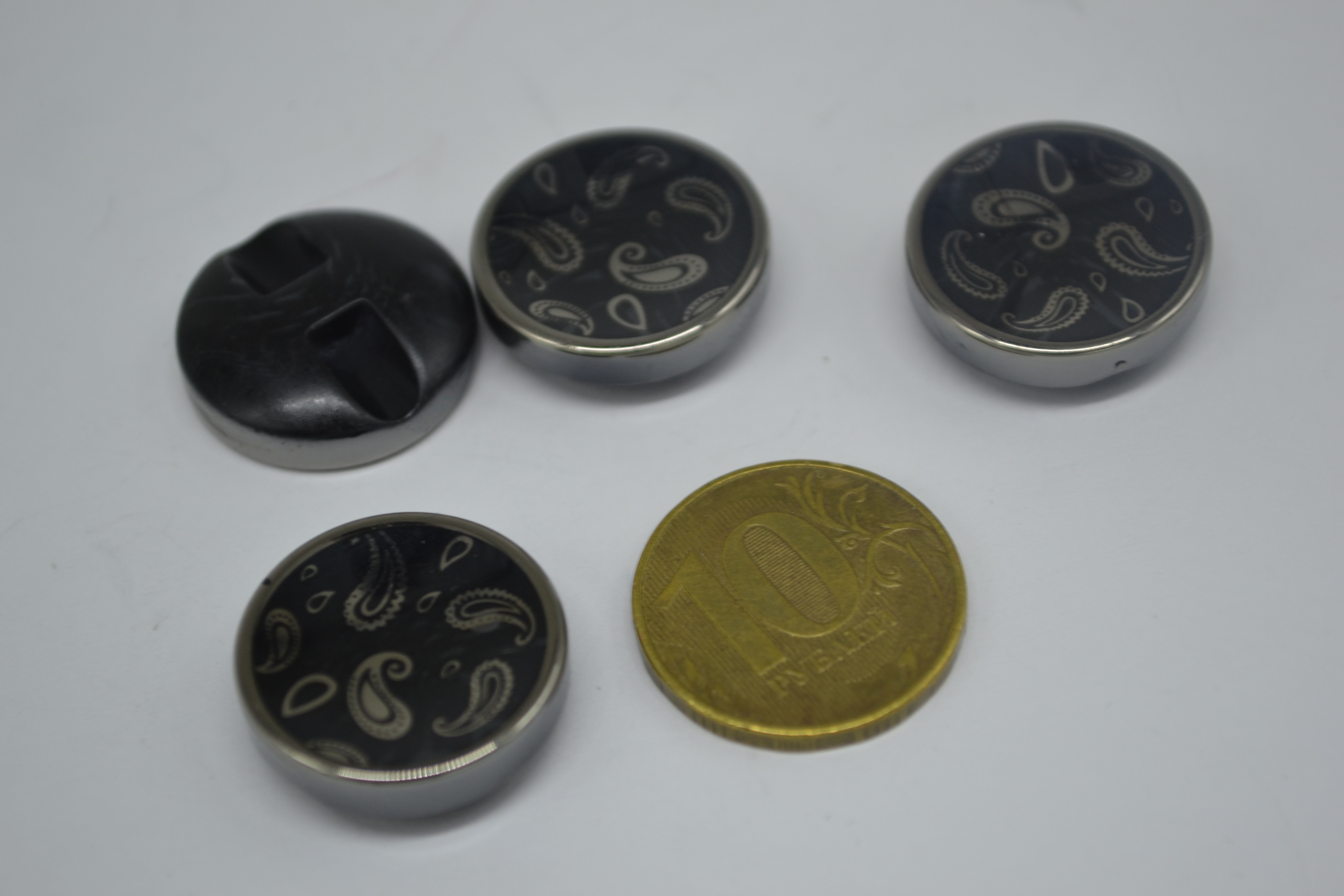 Пуговица 20 мм на ножке чёрная с рисунком 10 шт