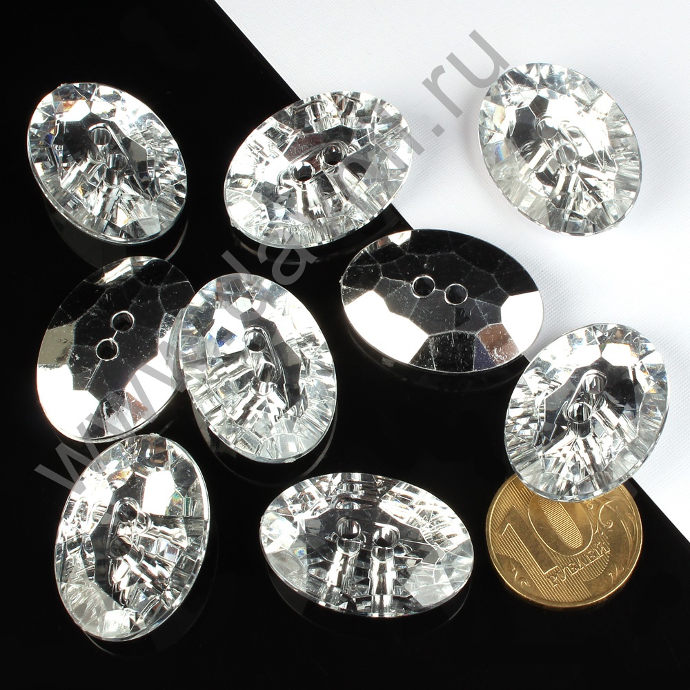 Пуговицы-стразы  акрил "Овал" 24*34 мм 100 шт серебряные 29