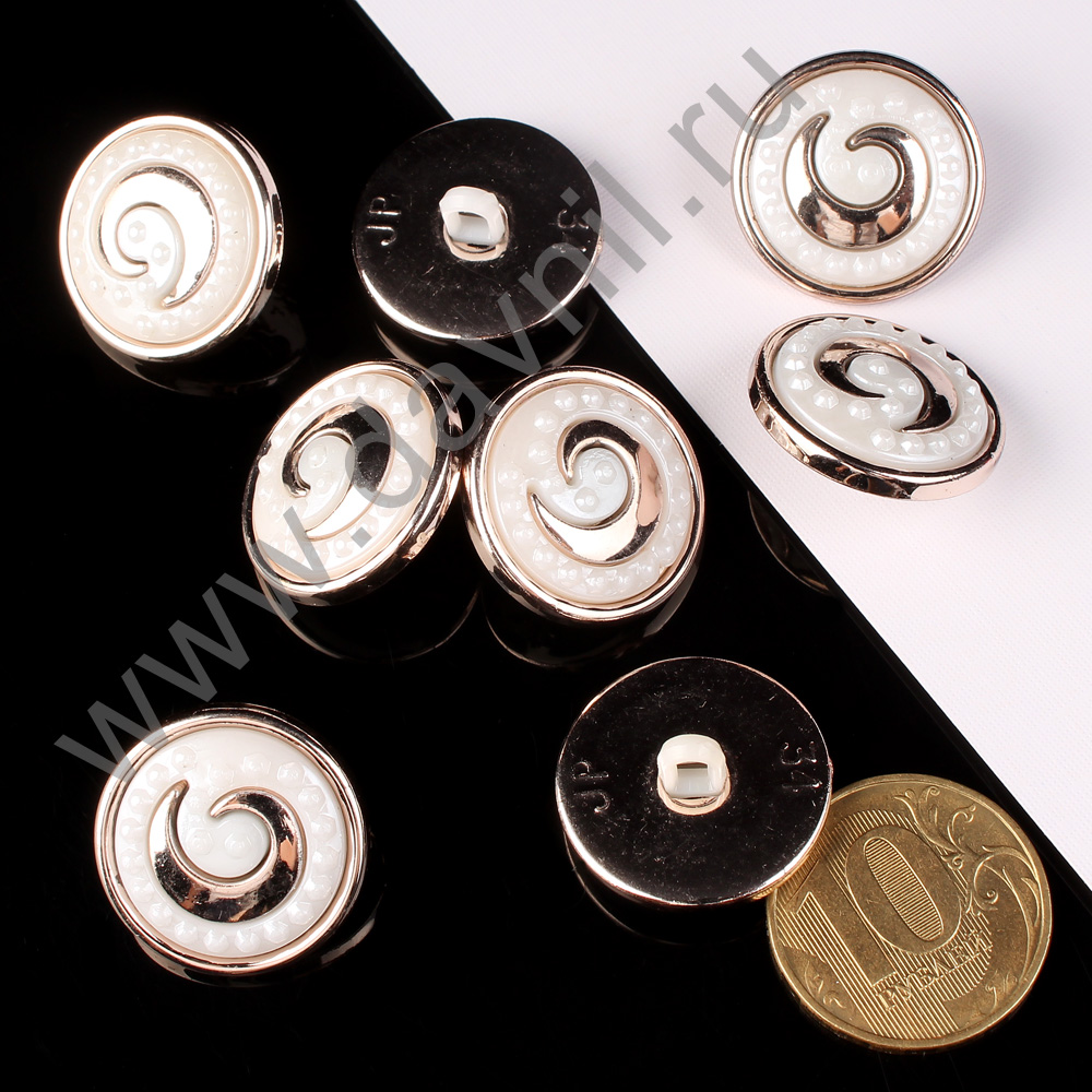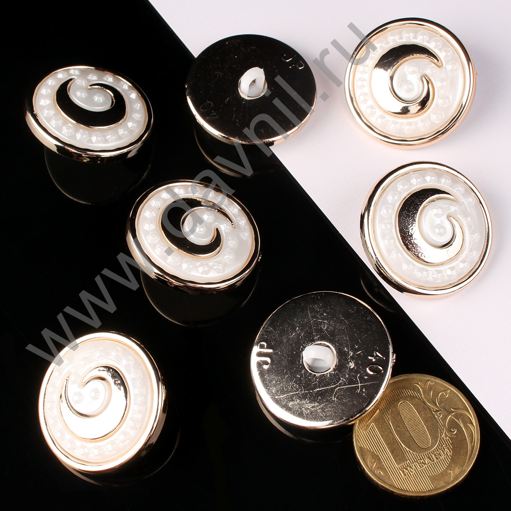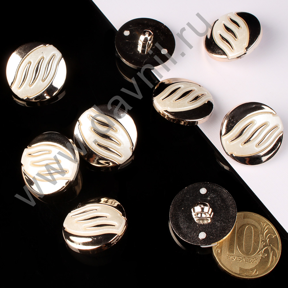 Пуговица 25 мм на ножке белая в золотой оправе 10 шт