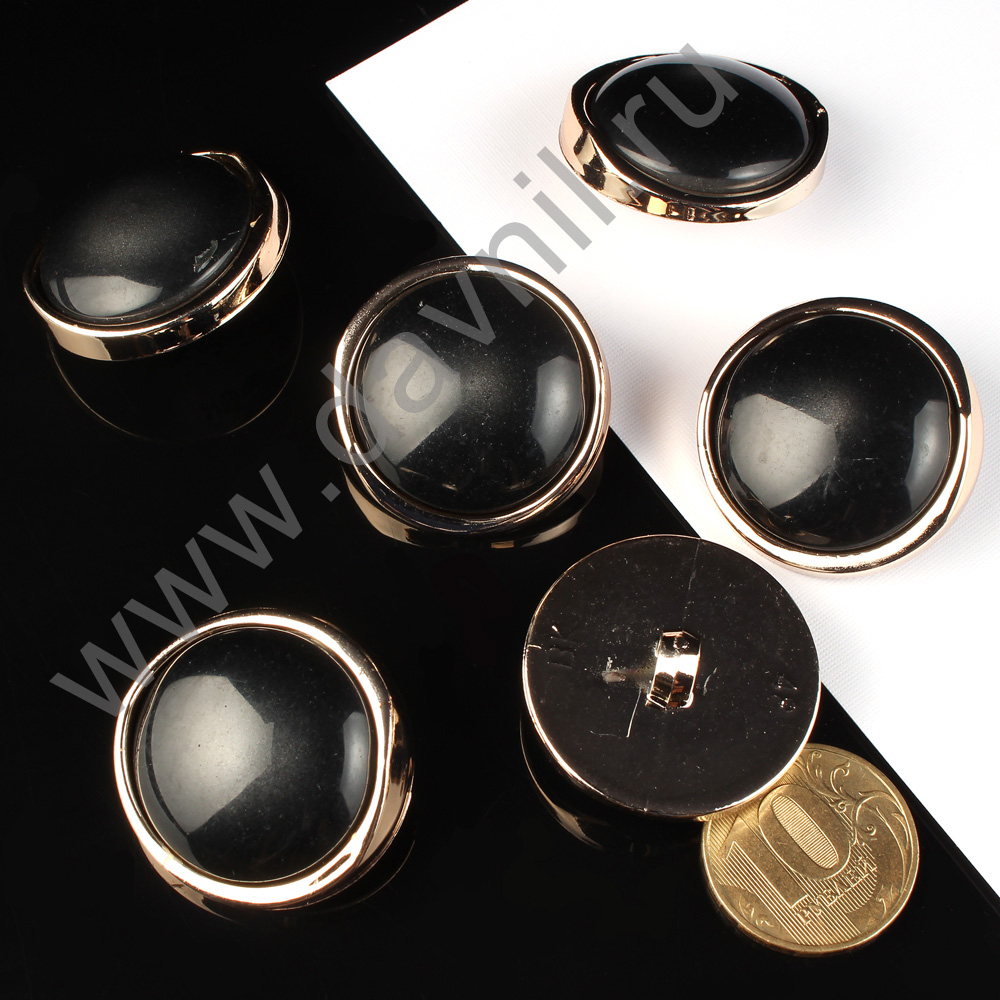 Пуговица 30 мм на ножке черная в золотой оправе 100 шт
