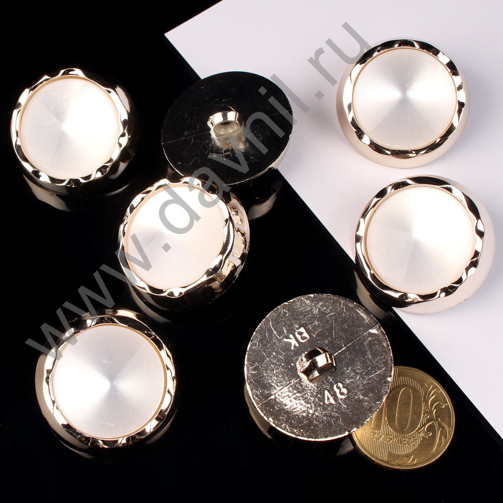 Пуговица 30 мм на ножке белый перламутр в золотой оправе 10 шт