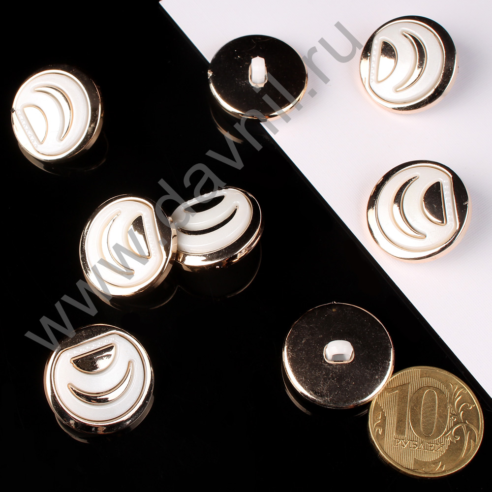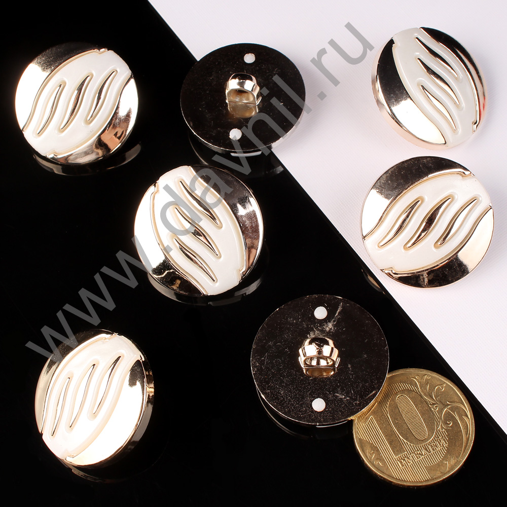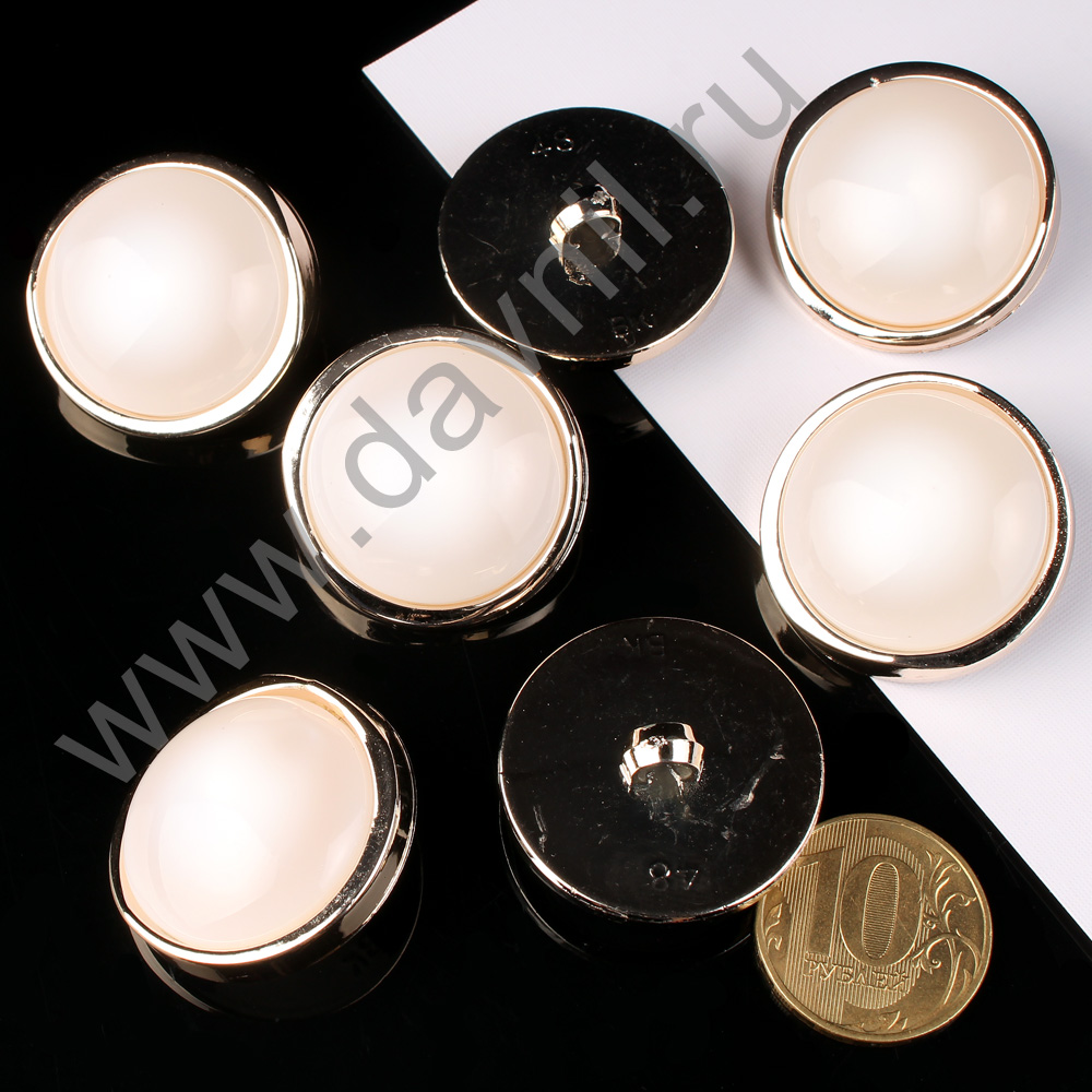 Пуговица 30 мм на ножке белая в золотой оправе 10 шт