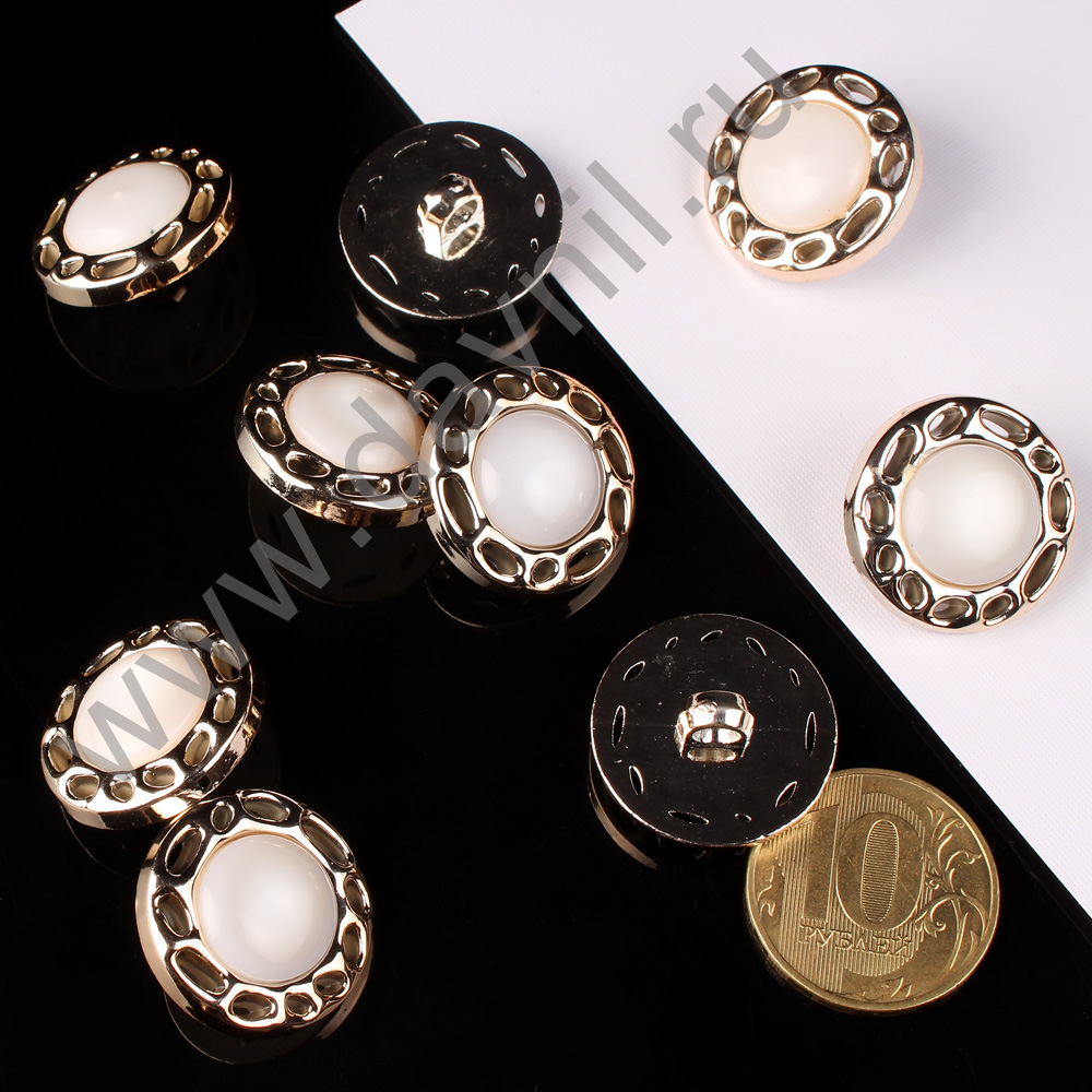 Пуговица 22 мм на ножке белый жемчуг в золотой оправе 200 шт