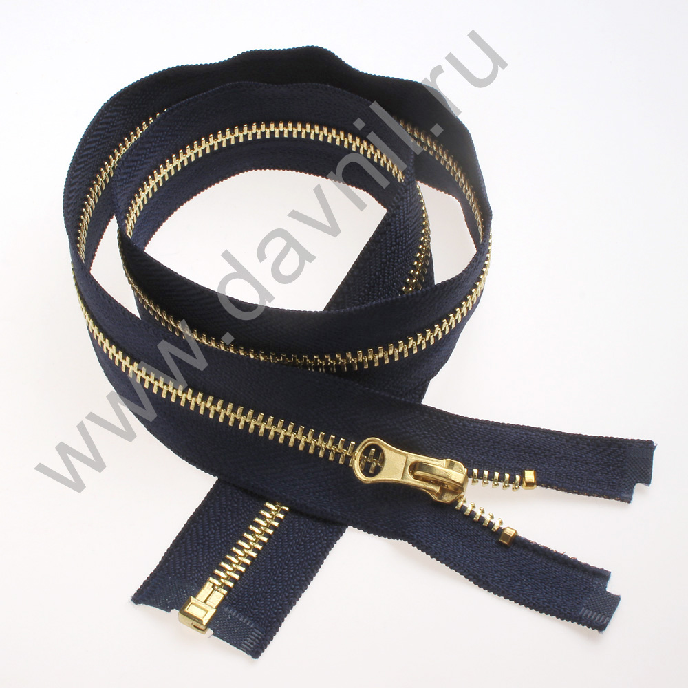 Молния металлическая с золотом 70 см синяя 570 10 шт.