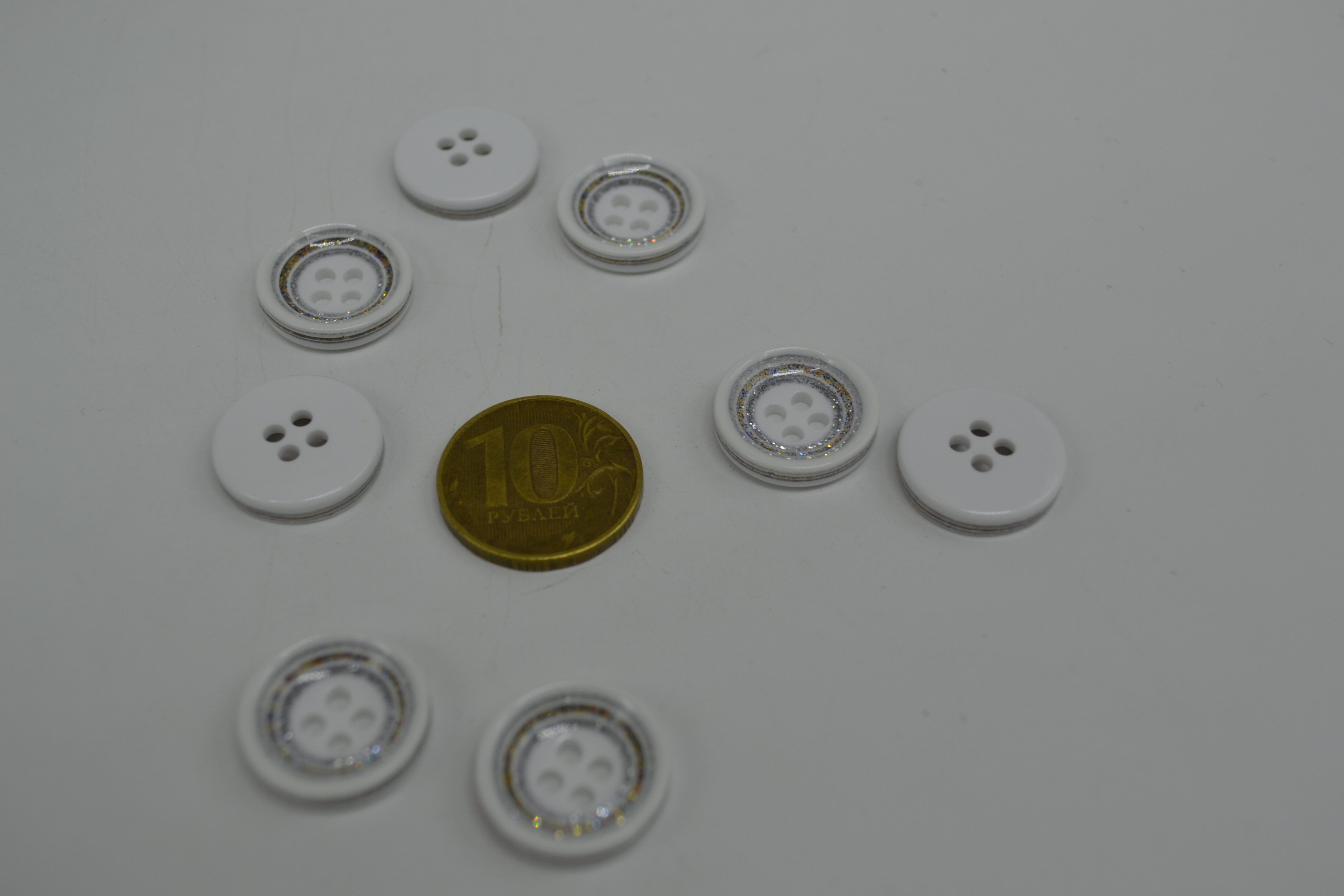 Пуговица 18 мм белая с серебряным глитером 20 шт