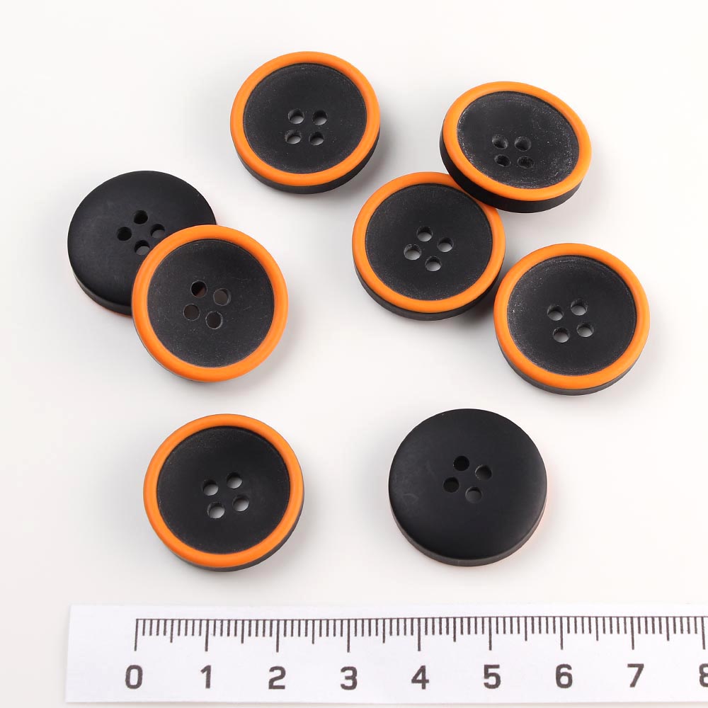 Пуговица 23 мм чёрная с оранжевым кольцом 10 шт