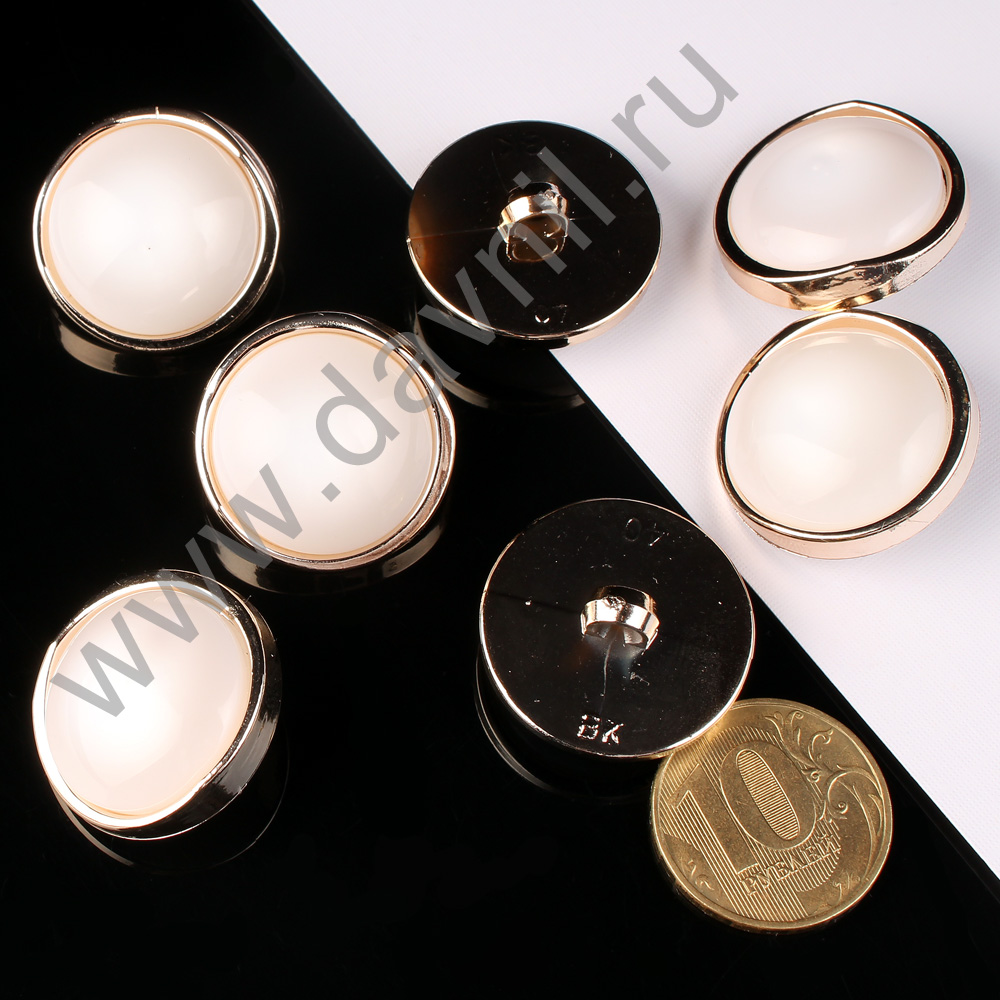 Пуговица 25 мм на ножке белый жемчуг в золотой оправе 100 шт