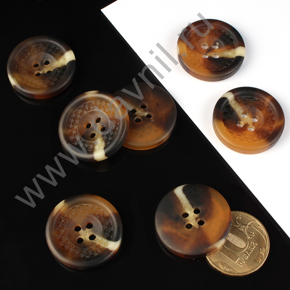 Пуговица 25 мм коричневая с разводами 100 шт