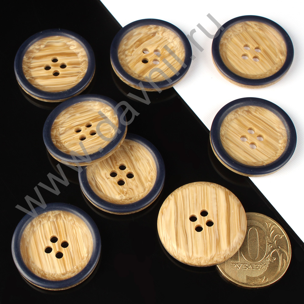 Пуговица 25 мм бежевая под дерево с чёрным ободком 100 шт