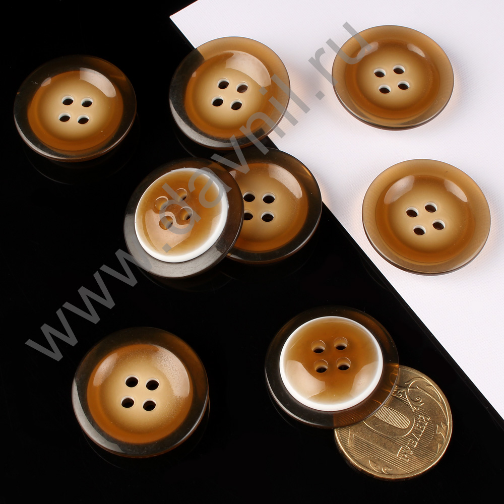 Пуговица 25 мм коричневая с белой оконтовкой 10 шт