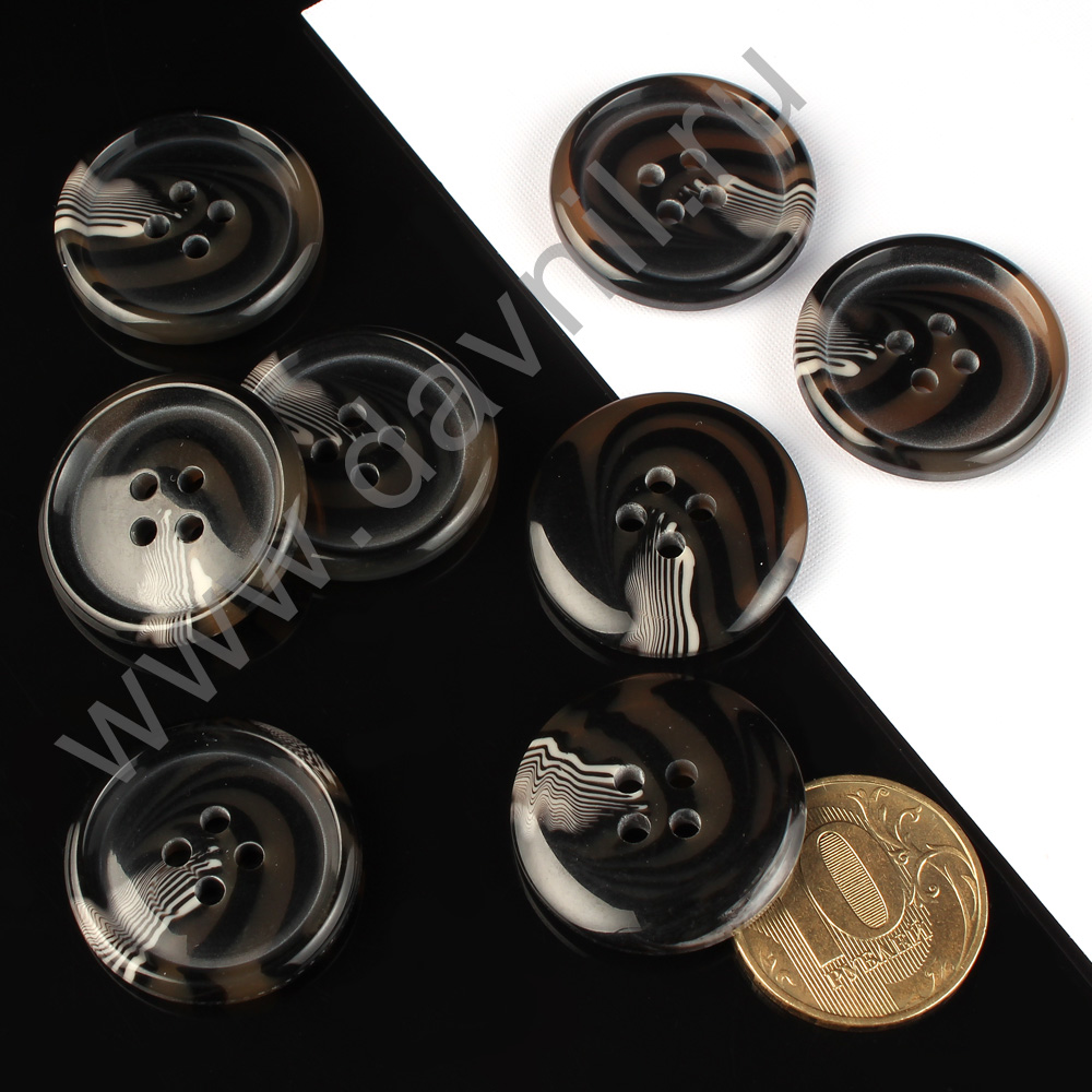Пуговица 25 мм черная с разводами 10 шт