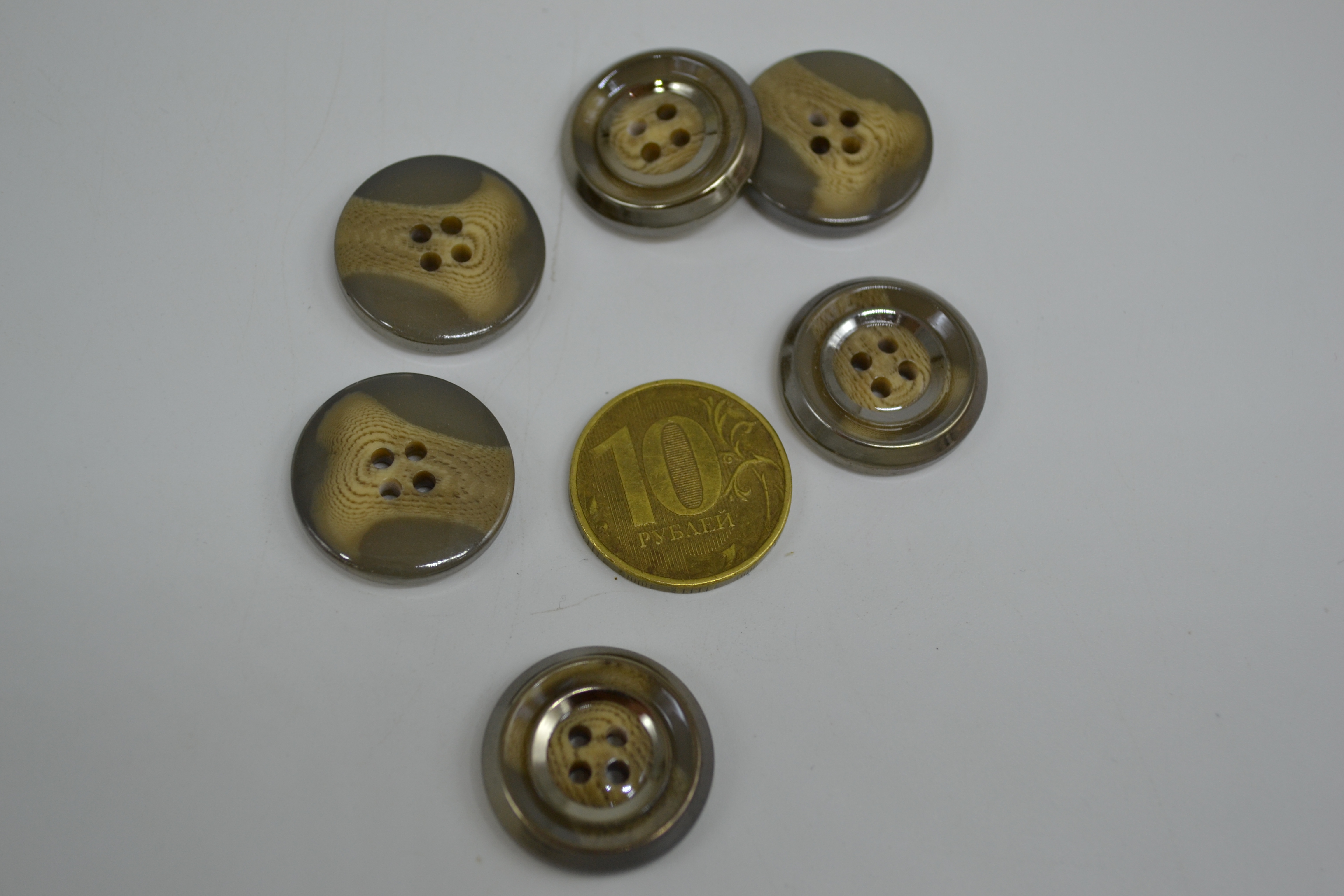 Пуговица 25 мм бежевая с коричневыми разводами 10 шт