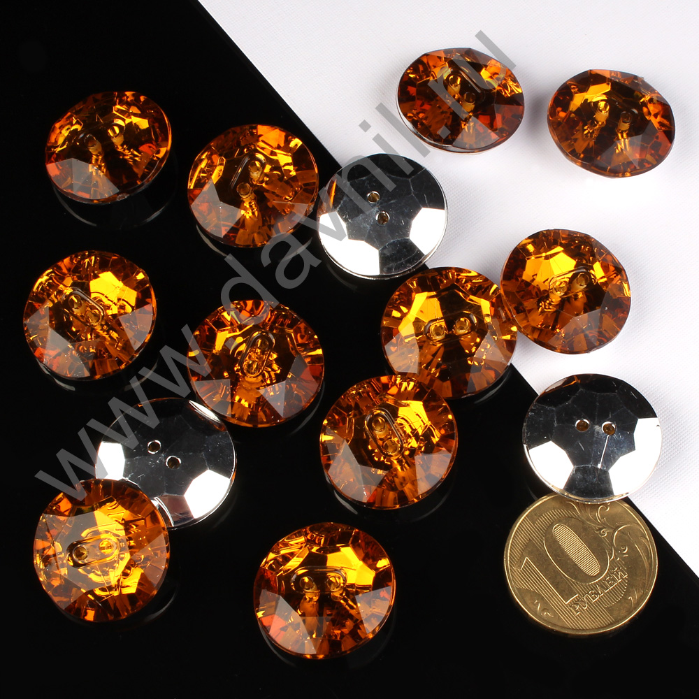 Пуговицы-стразы акрил "Круг" 20 мм 20 шт коричневые