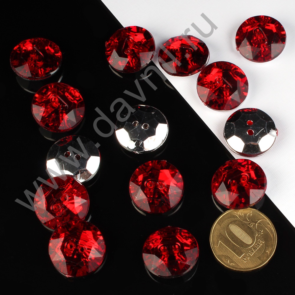 Пуговицы-стразы акрил "Круг" 18 мм 200 шт бордо