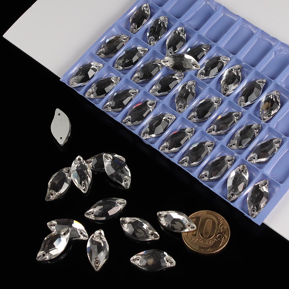 Пришивные стразы стекло прямоугольник 18*13 мм 32 шт белые