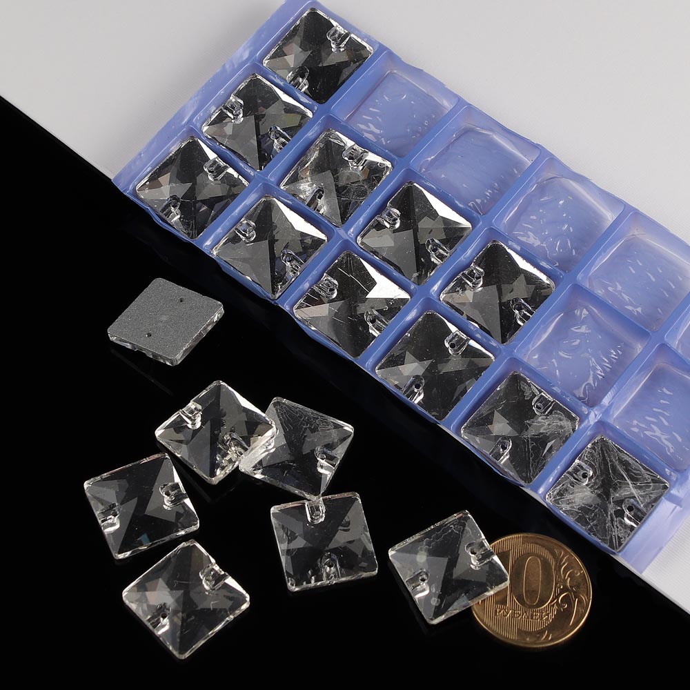 Пришивные стразы стекло квадрат 22 мм 12 шт белые