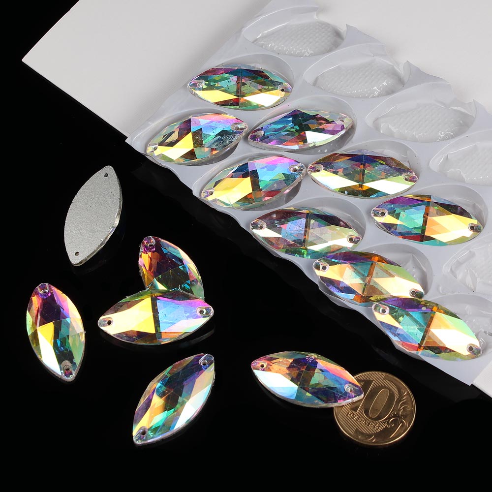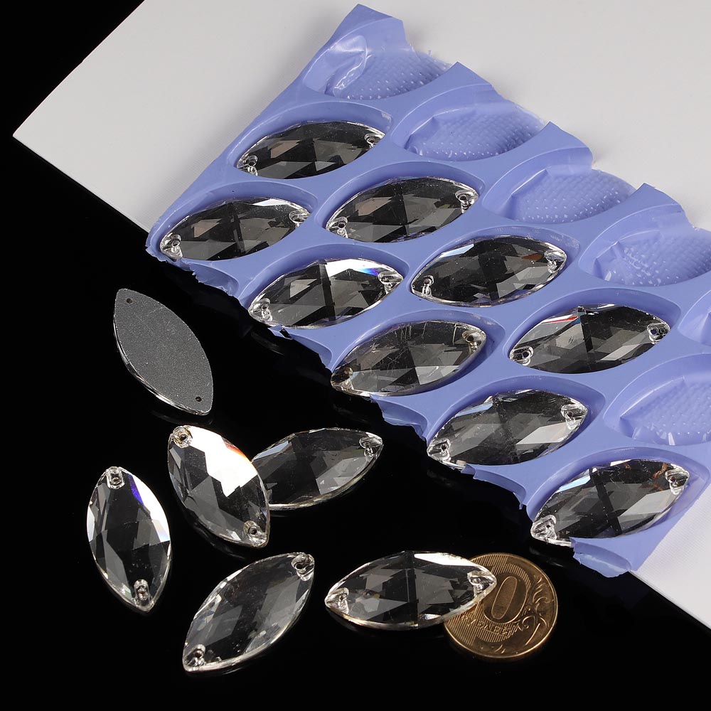 Пришивные стразы стекло резанный прямоугольник 20*15 мм 32 шт