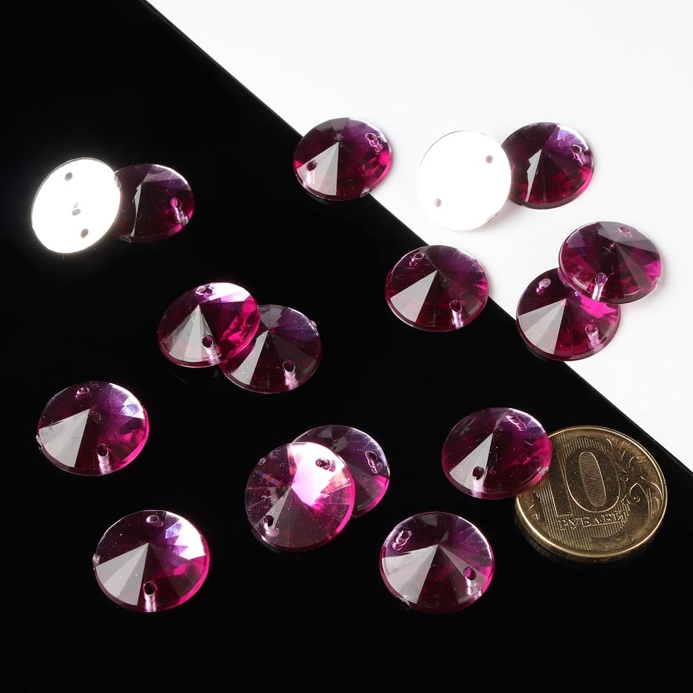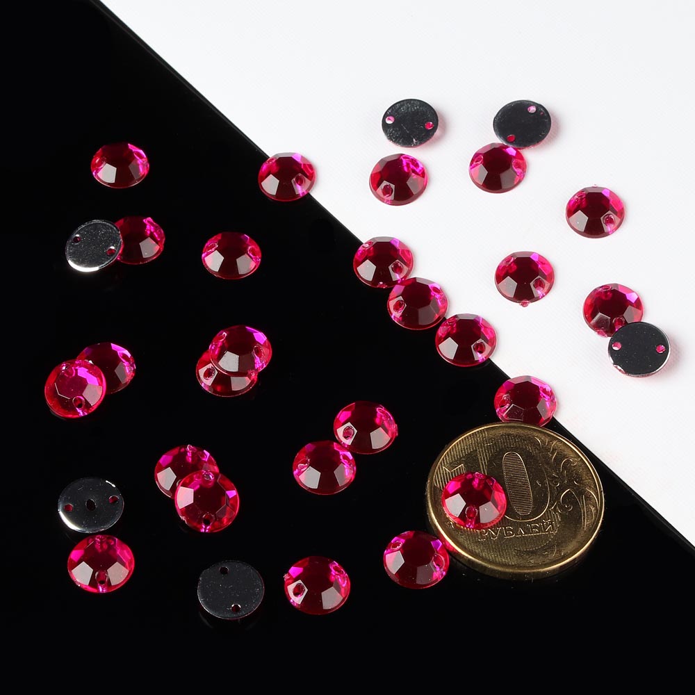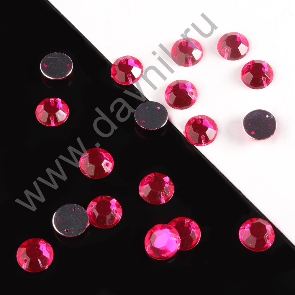 Стразы пришивные акрил "Круг" 10 мм 2000 шт ярко розовый восьмигранник 38