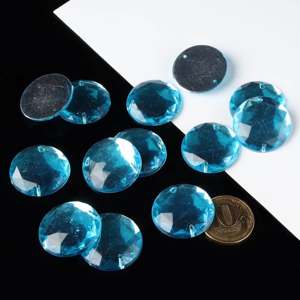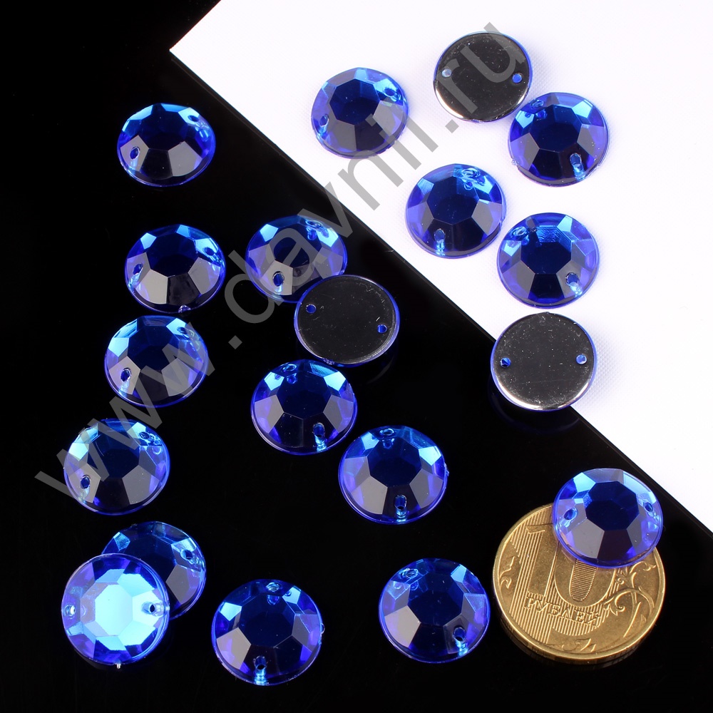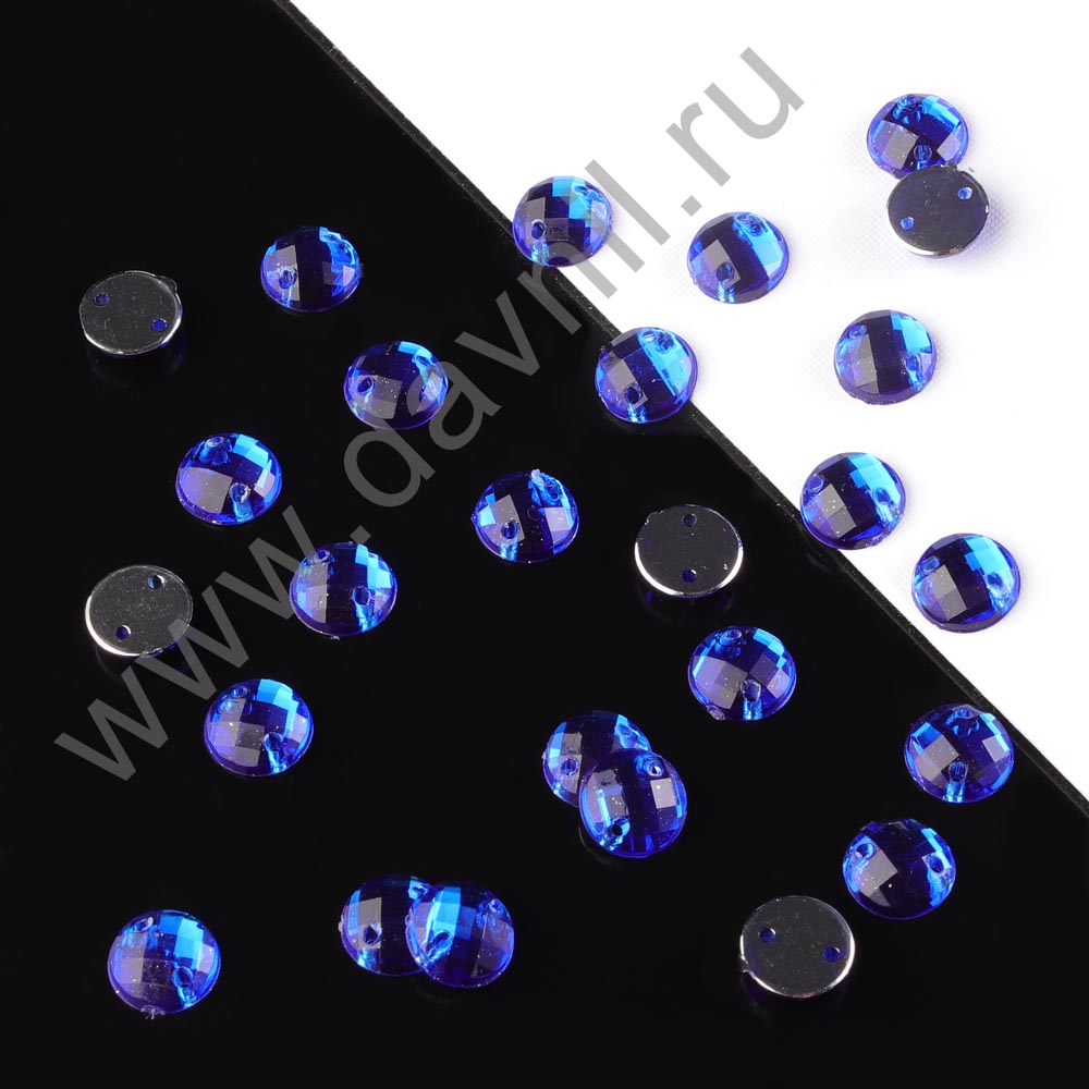 Стразы пришивные акрил "Круг" 10 мм 2000 шт синий восьмигранник 7