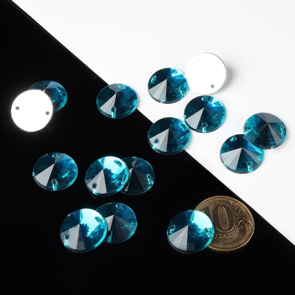 Стразы пришивные акрил "Круг" 8 мм 2000 шт бирюзовые остро конечные