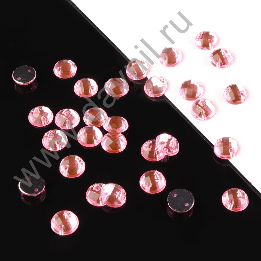 Стразы пришивные акрил "Круг" 10 мм 2000 шт розовые гранённые 3
