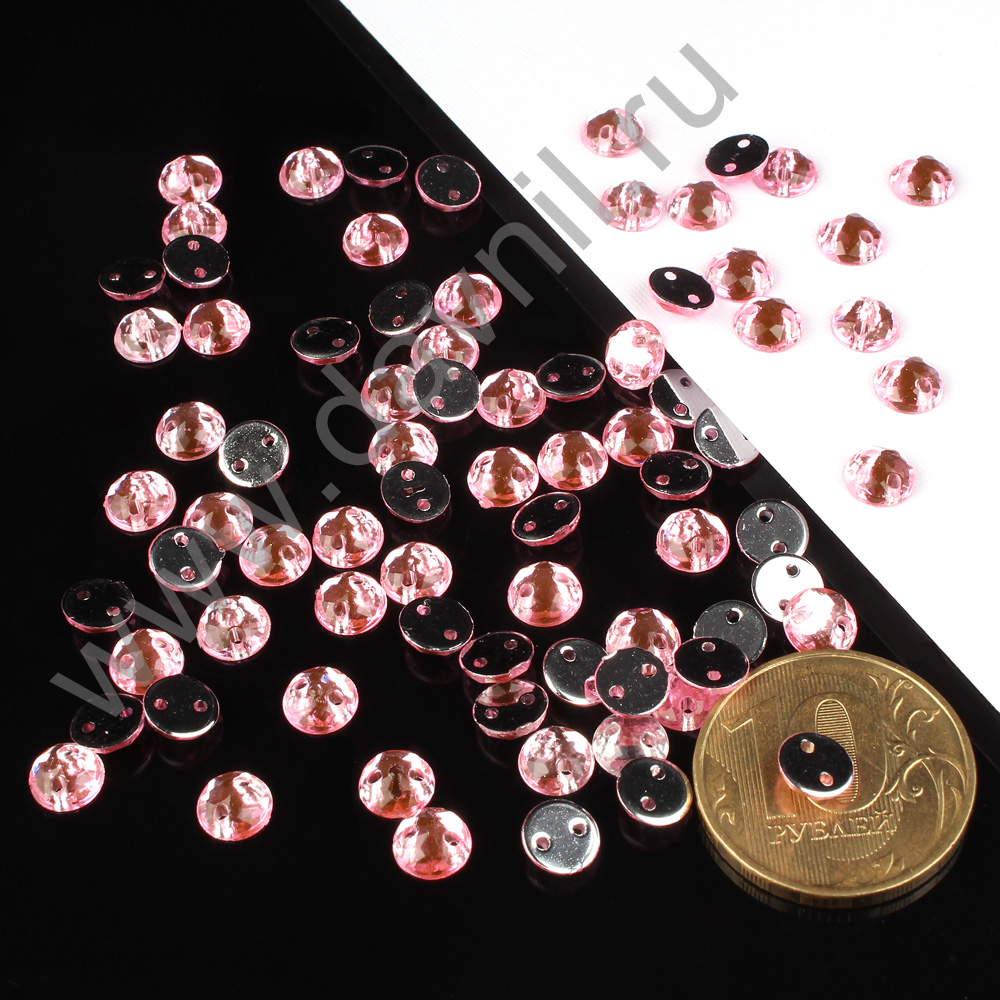 Стразы пришивные акрил "Круг" 6 мм 5000 шт розовые гранённые